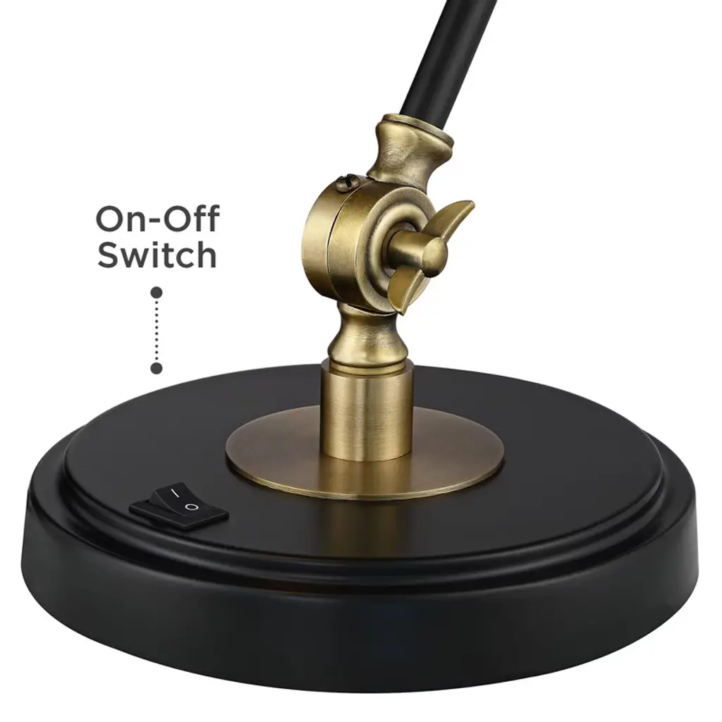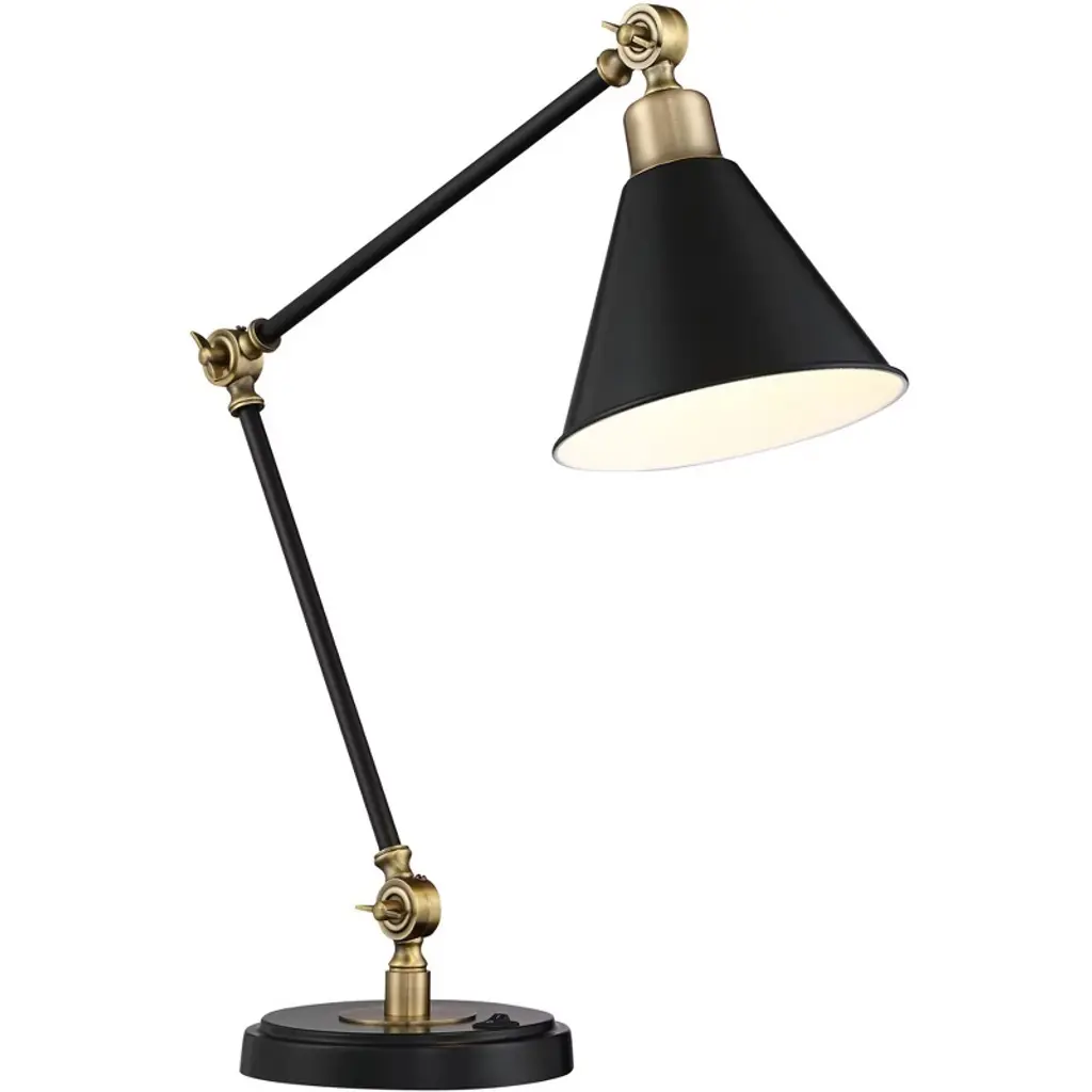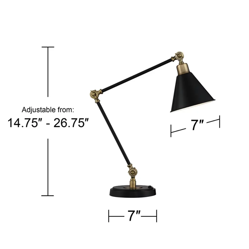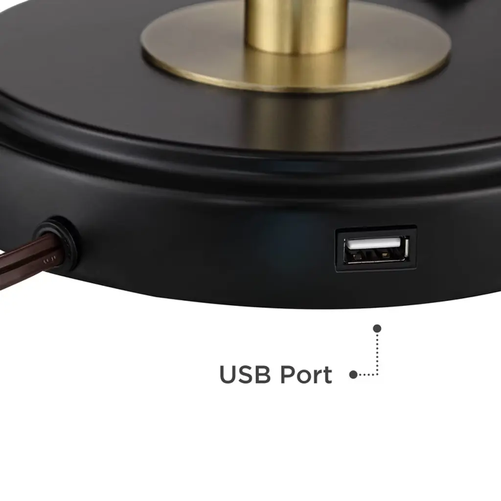 A classic design revisited, this desk lamp has adjustable arms that make it perfect for task lighting or for use as a reading light. From the 360 Lighting brand, it features a beautiful painted black finish with classic antique brass accents. Best of all, it has a handy, built-in dual USB ports in the base that lets you charge smart phones or other devices. Use it in an office setting, or on a bedside table for smart, functional lighting.