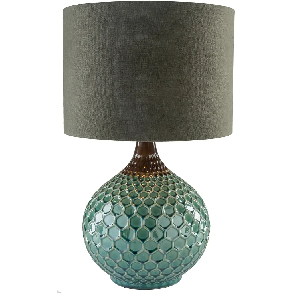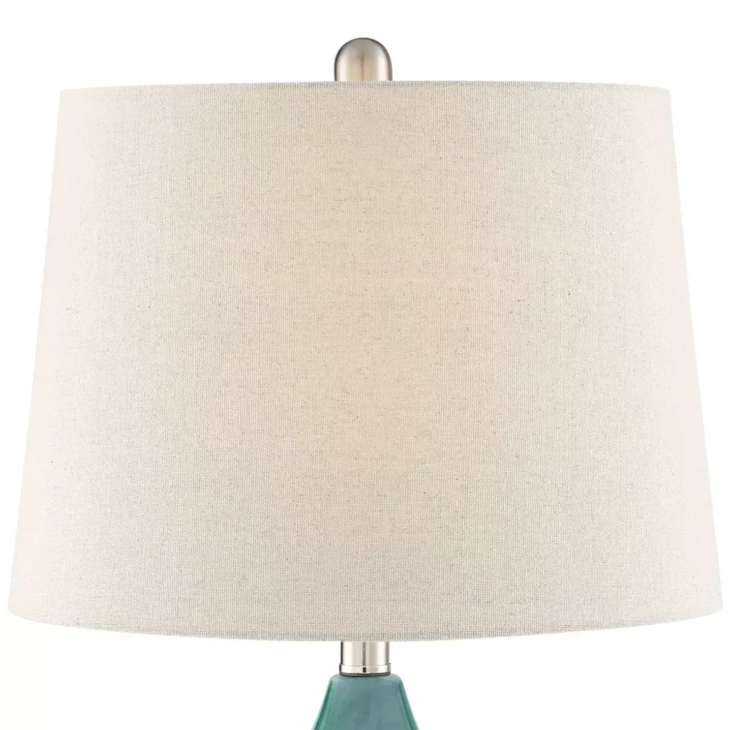 Add a touch of color to your decor with this coastal table lamp. From the talented artisans at 360 Lighting, this lamp comes in a beautiful sea foam color that adorns its ceramic body. This style comes with a sophisticated oatmeal-color shade. Tabletop dimmer included.