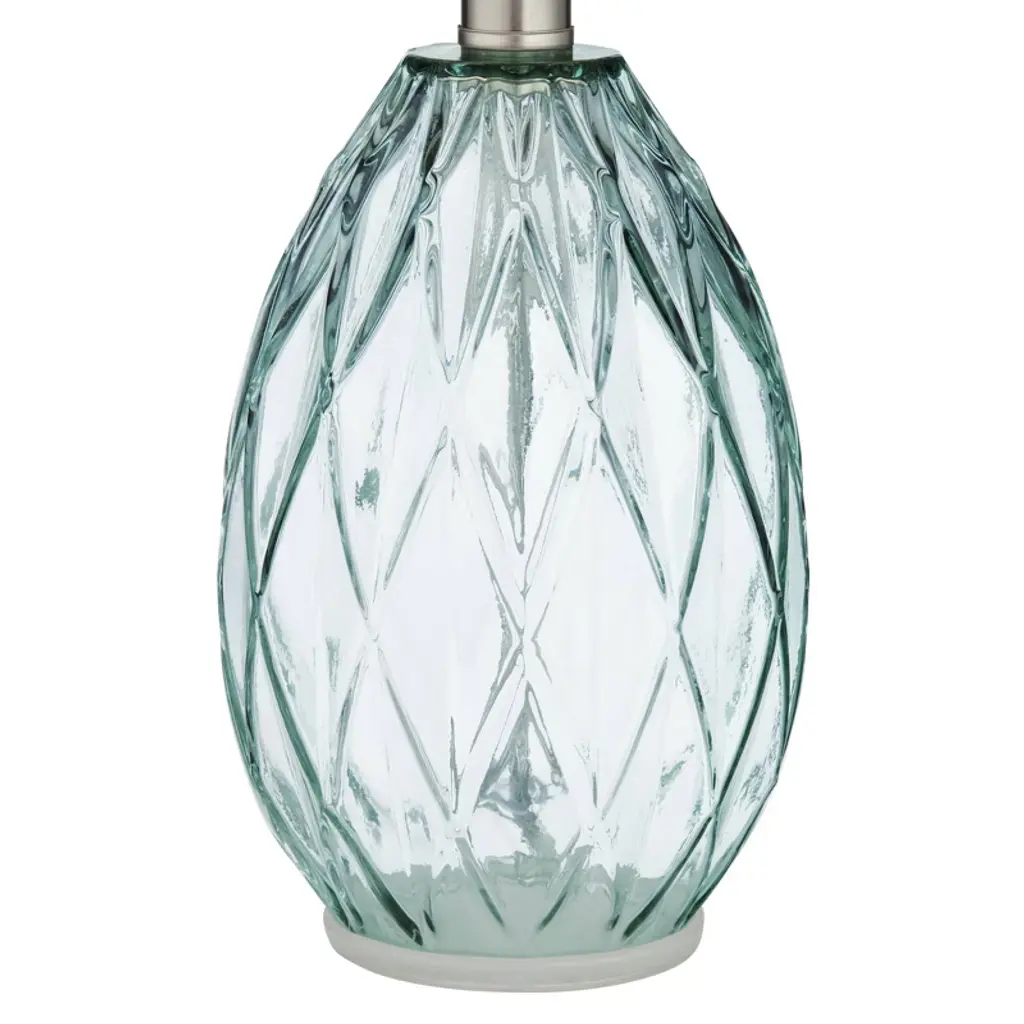 From the 360 Lighting brand, these accent table lamps comes in a translucent blue-green glass construction with a diamond-shaped textured pattern, with an opened-up base bottom. The result is a light and playful modern design, perfect if displayed together or separately. This lamp set comes with two tabletop dimmers, one for each lamp, which allows you to control the level of lighting. Simply insert the lamp plug into the dimmer outlet, and then slide the switch on the control to dim or brighten the lighting.