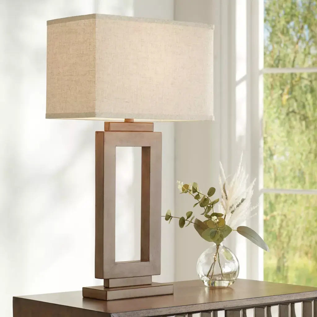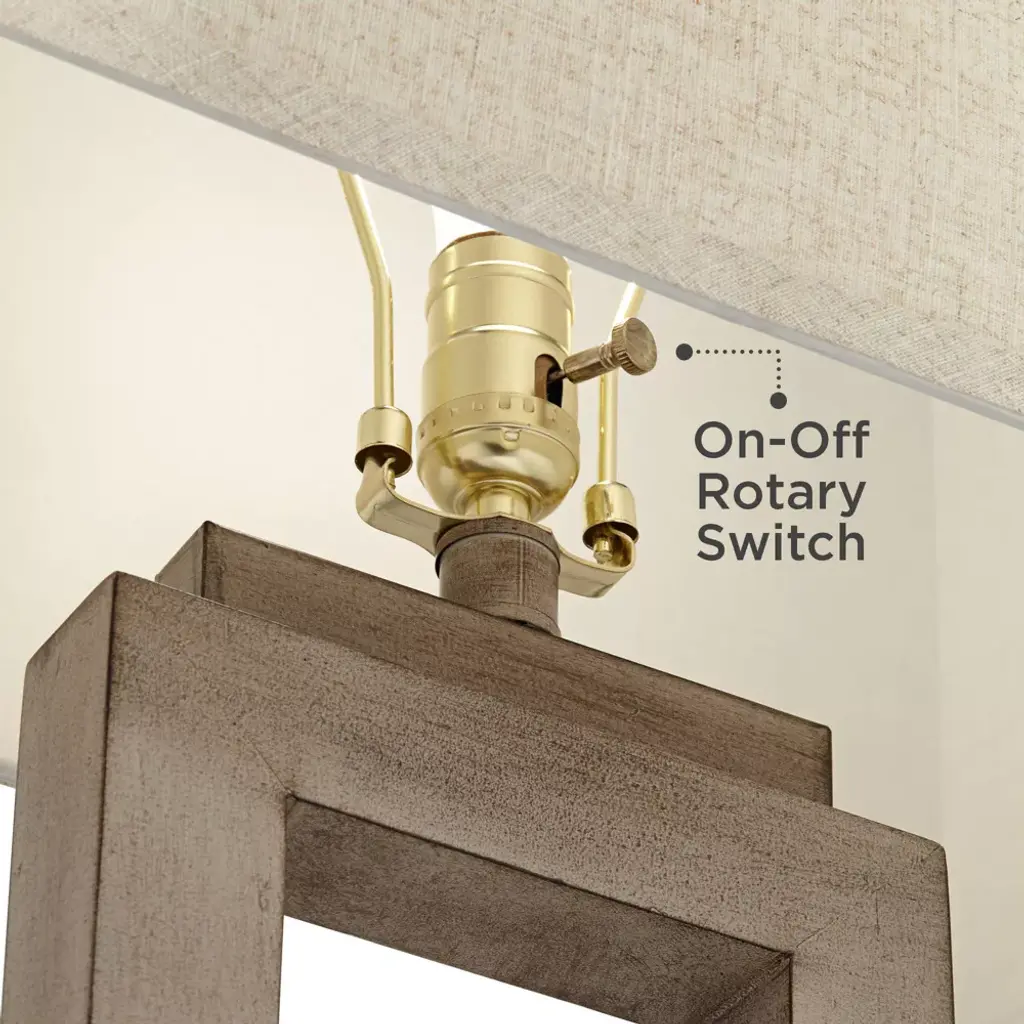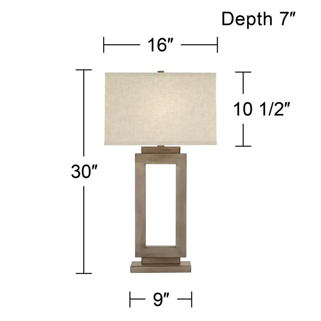 360 Lighting Rustic Farmhouse Table Lamp 30" Tall Sand Metal Open Window Oatmeal Fabric Rectangular Shade For Bedroom Living Room Bedside House Home
