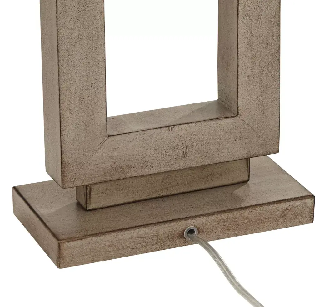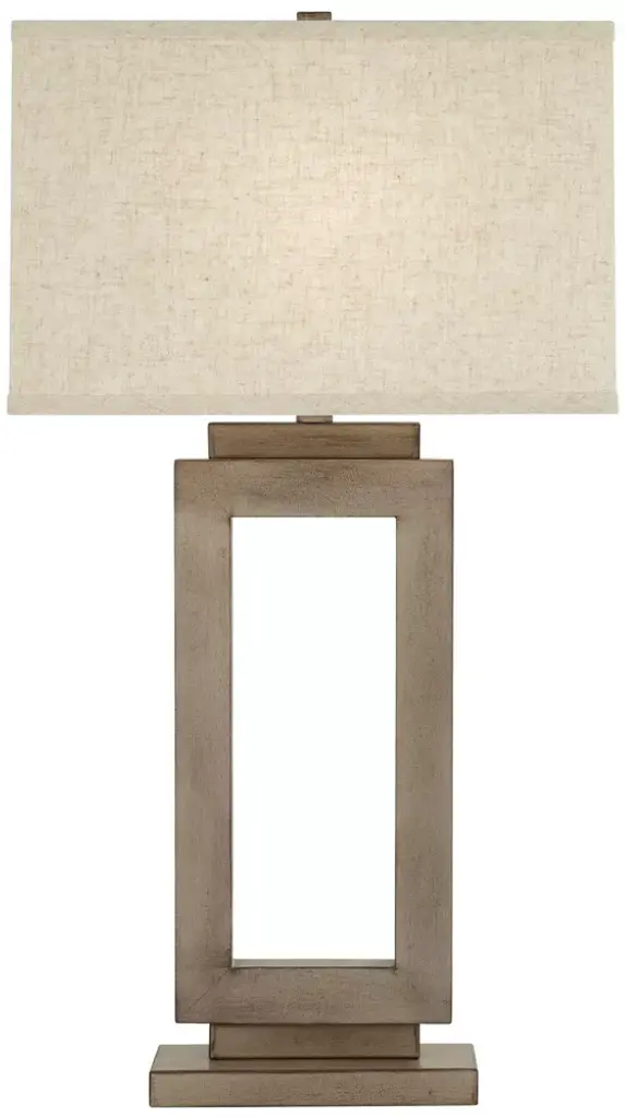 Add come coastal cool to your decor with this modern table lamp design. From the 360 Lighting brand, the design features an open rectangular metal base in a sand finish. Up top is a rectangular oatmeal color lamp shade with a white liner. An elegant and sophisticated look for a coastal style room or a modern living room.