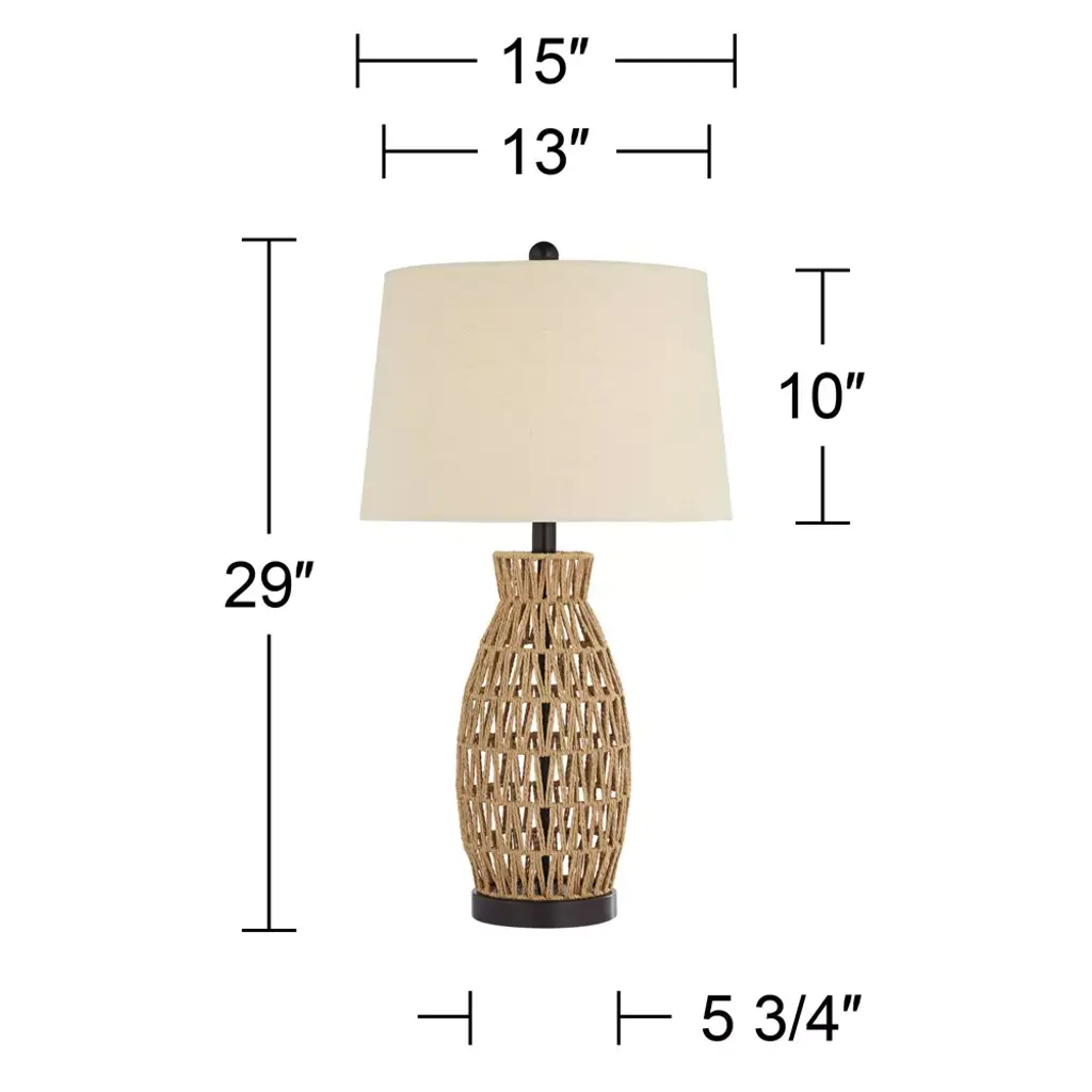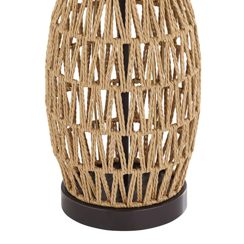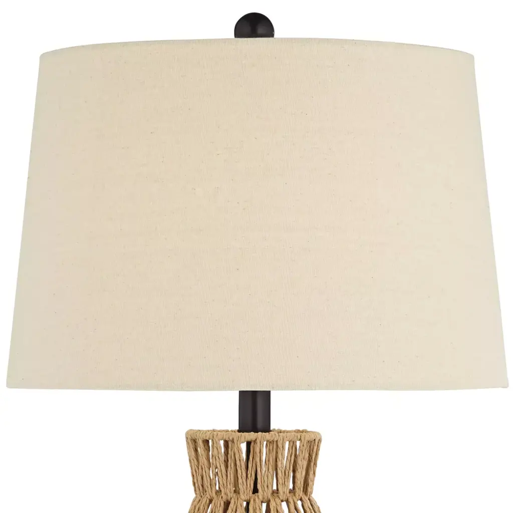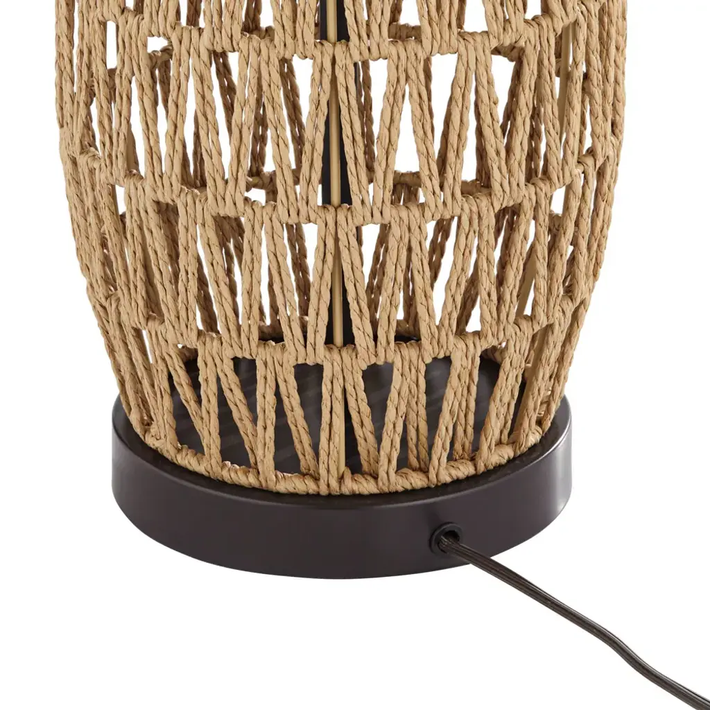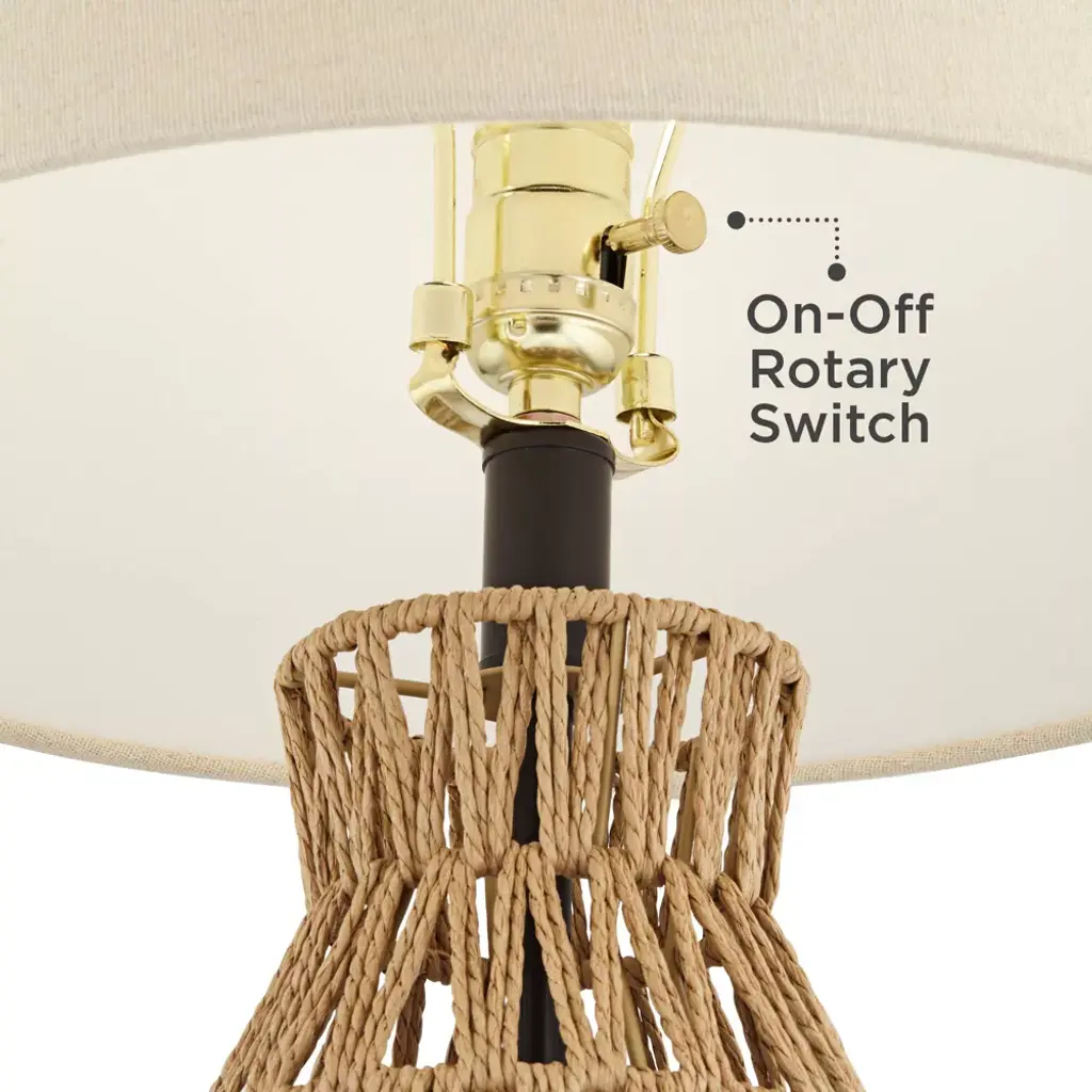 Ideal for coastal rooms or for adding a contemporary touch to your favorite space, these table lamps that will shine in any setting. From the 360 Lighting brand, they feature open weave natural rattan wicker bases. Bronze finish metal accents play against the organic look of the wicker weave. Up top are oatmeal fabric shades that complete the look.