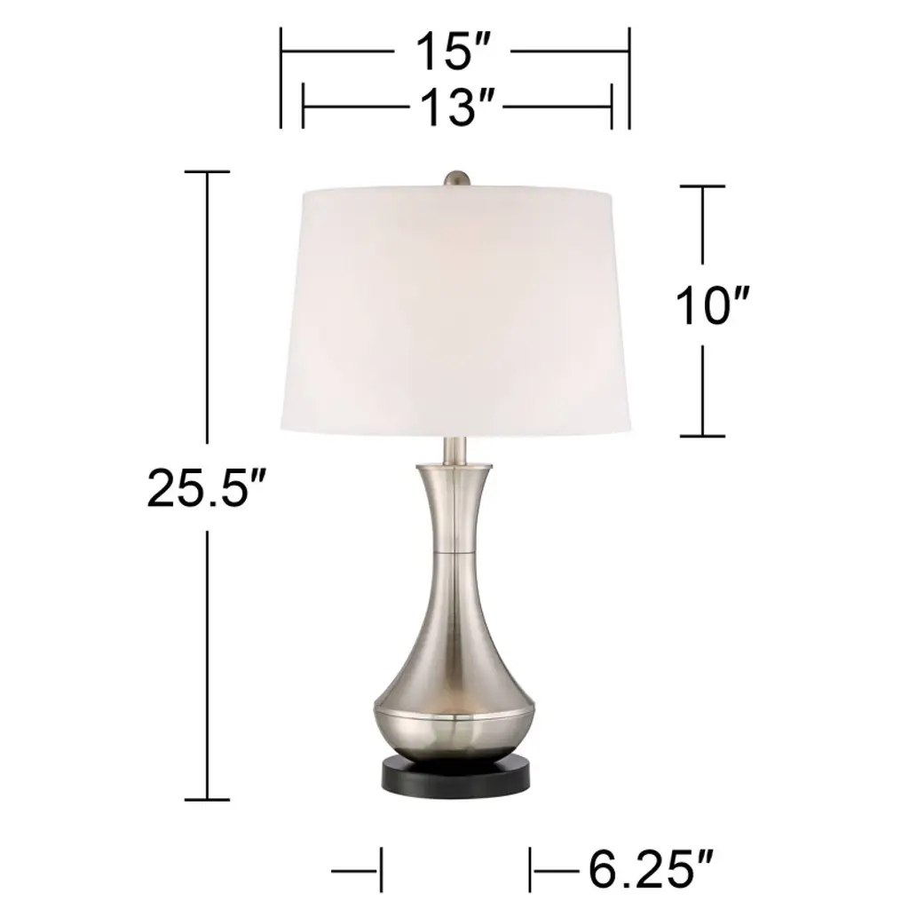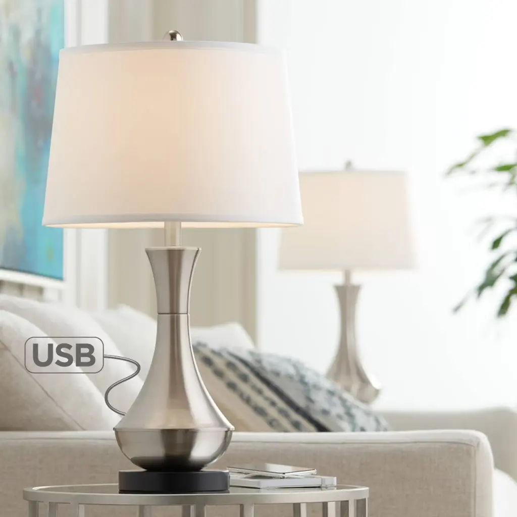 360 Lighting Simon Modern Table Lamps 25 1/2" High Set Of 2 Brushed Nickel With Usb Charging Port White Fabric Drum Shade For Bedroom Living Room Desk