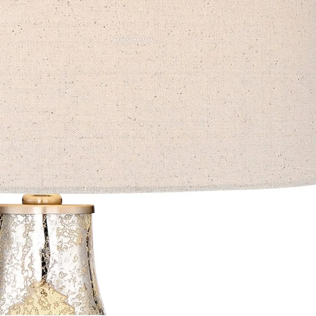 Decorate the modern home with this beautiful mercury glass table lamp. The cool tones in the body are paired with a neutral tone in the off-white drum shade on top. From 360 Lighting. This lamp comes with a tabletop dimmer, which allows you to control the level of lighting. Simply insert the lamp plug into the dimmer outlet, and then slide the switch on the control to dim or brighten the lighting. Dimmer is compatible with halogen and incandescent bulbs, and most dimmable CFL and LED bulb designs.