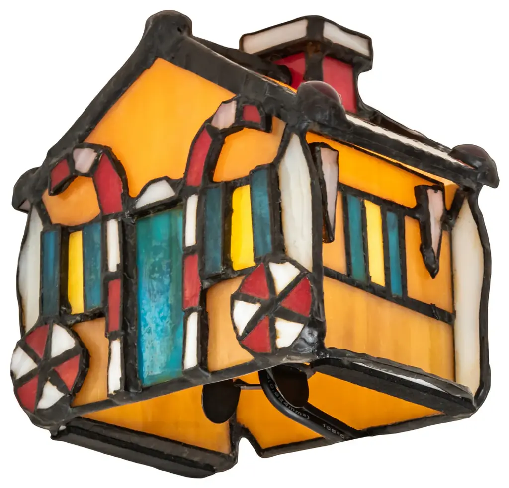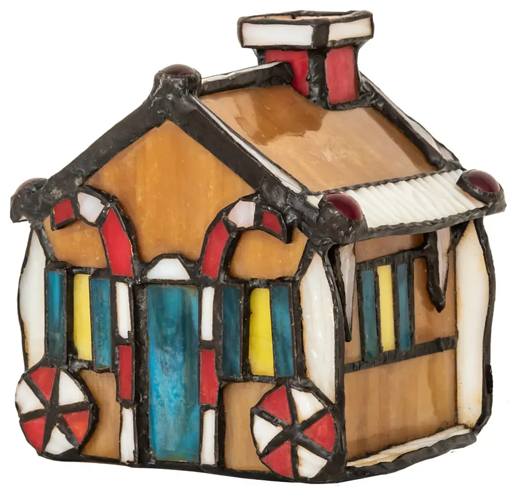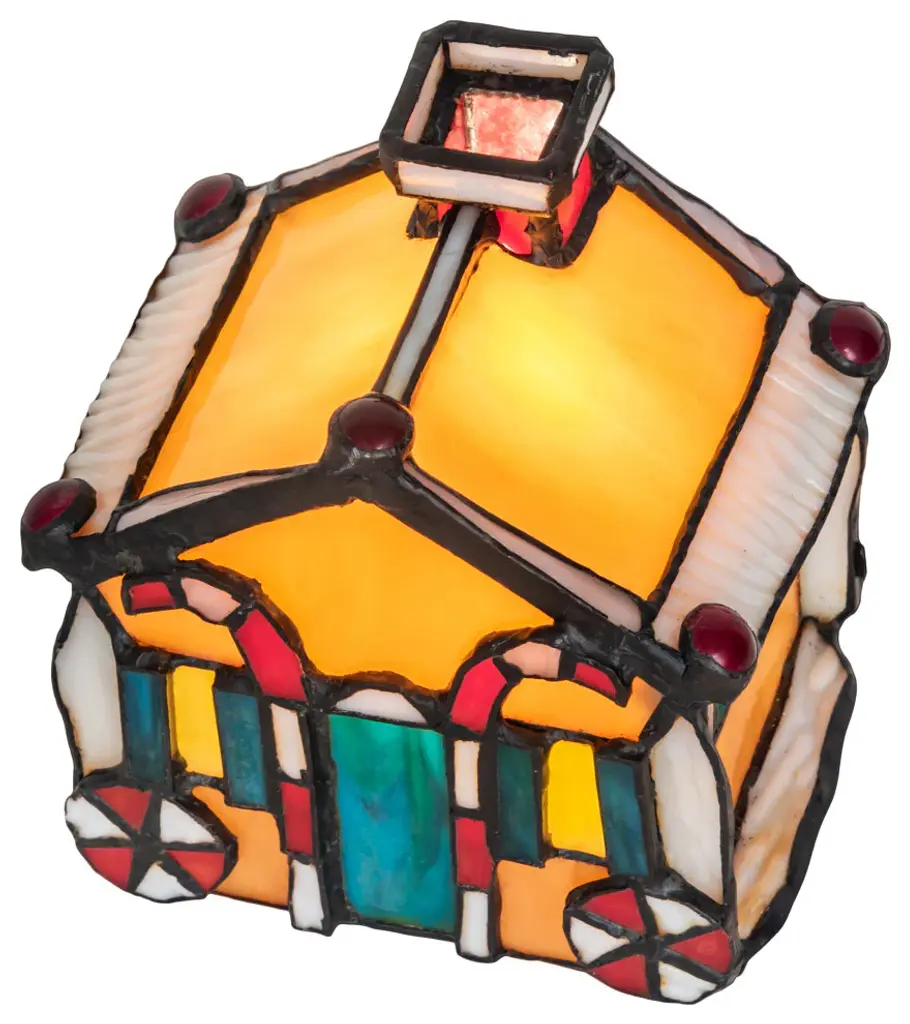 This festive holiday Gingerbread House accent lamp; crafted of Holiday Red and Green stained art glass with Winter White and Amber accents will put you in the spirit of the season.