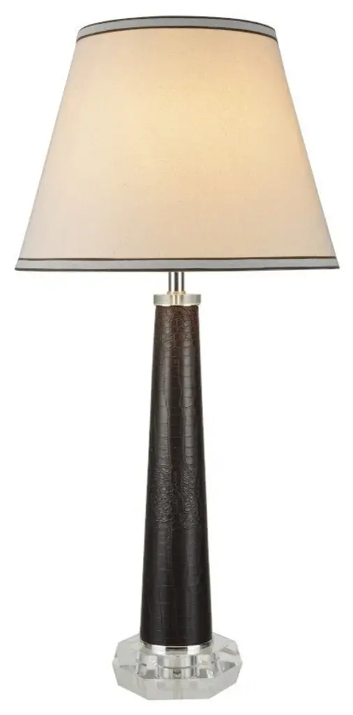 40053, 30" High Modern Table Lamp, Brown Faux Leather With Crystal Base