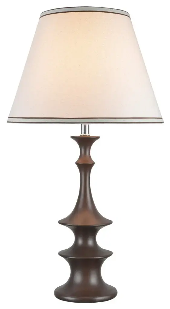 Aspen Creative is dedicated to offering a wide assortment of attractive and well-priced portable lamps, kitchen pendants, vanity wall fixtures, outdoor lighting fixtures, lamp shades, and lamp accessories. We have in-house designers that follow current trends and develop cool new products to meet those trends. Product Detail• Brown finish with faux wood grain | Lampshade color & type - Off White with brown trim on top and bottom, Linen Fabric, Empire shaped lamp shade• Lamp shade size - 9" top x 16" bottom x 11 1/2" slant height• ON/OFF switch, Uses a medium base light bulb, 100 watt max, Light bulb not included, UL Listed• Our hardback shades use Virgin Styrene backing board to produce a warm, natural & smooth light more appealing than shades made with recycled Styrene board that can crack & yellow over time.