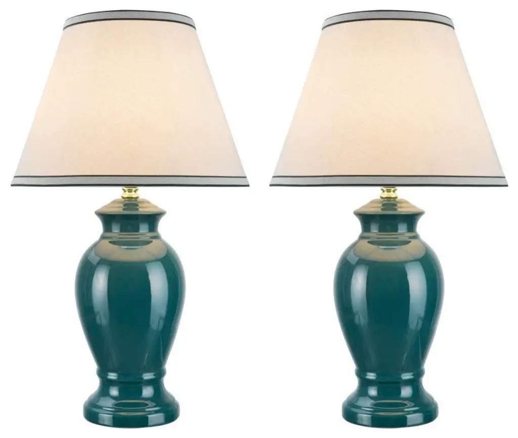 40071, Two Pack Set 21 1/2" High, Traditional Ceramic Table Lamp, Green