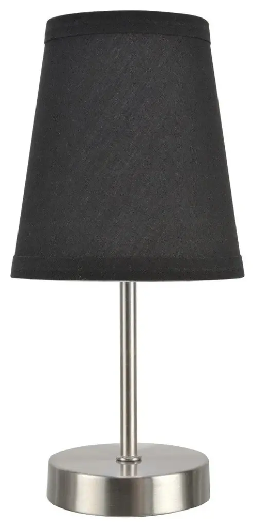 Aspen Creative is dedicated to offering a wide assortment of attractive and well-priced portable lamps, kitchen pendants, vanity wall fixtures, outdoor lighting fixtures, lamp shades, and lamp accessories. We have in-house designers that follow current trends and develop cool new products to meet those trends. Product Detail• Hardback Empire Fabric Lamp Shade in Black, 4" top x 5 1/2" bottom x 9" height | Metal construction in Satin Nickel• Uses 1 (E12) candelabra base light bulb, 40 watt max, Light bulb not included• On/Off Power Cord Switch, UL listed for indoor, dry location.• Our hardback shades use Virgin Styrene backing board to produce a warm, natural & smooth light more appealing than shades made with recycled Styrene board that can crack & yellow over time.