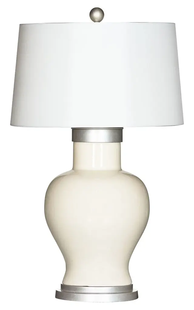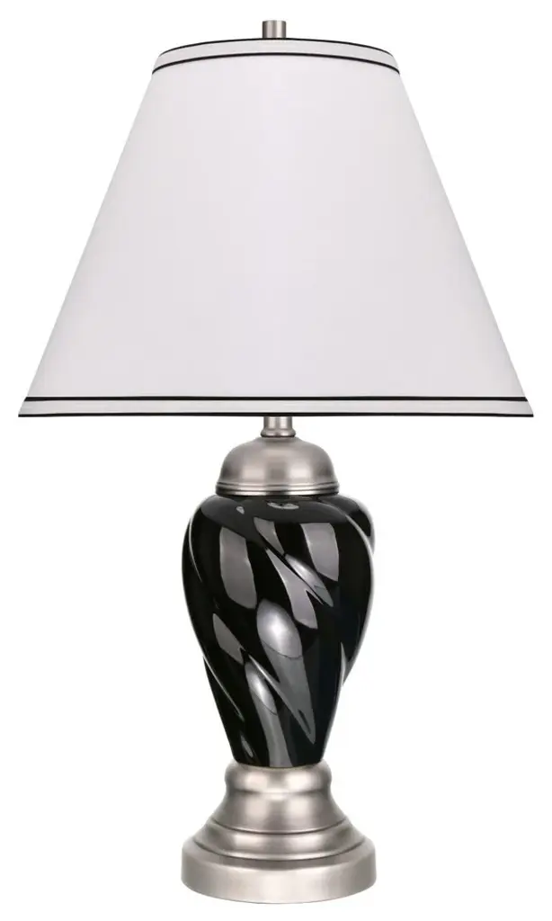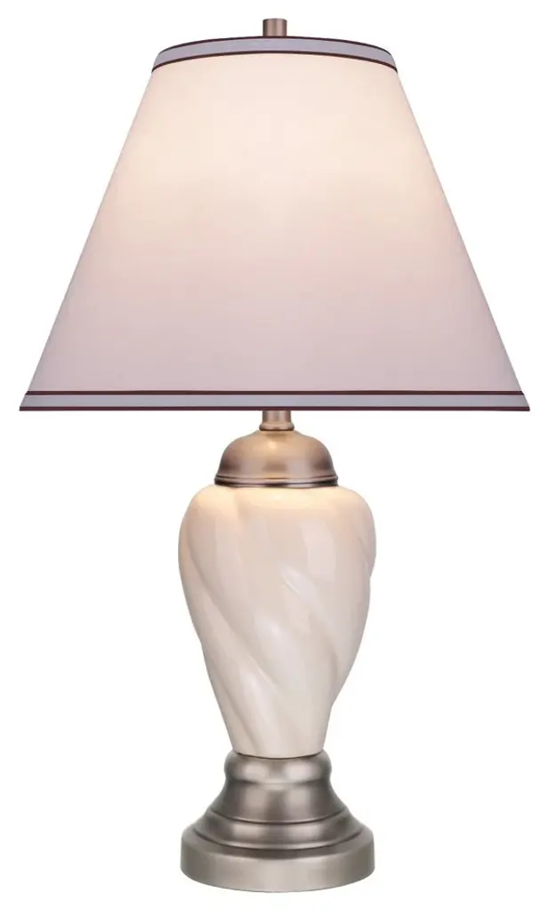40093-1, 26" High Ceramic Table Lamp, Ivory With Pewter Finish Base