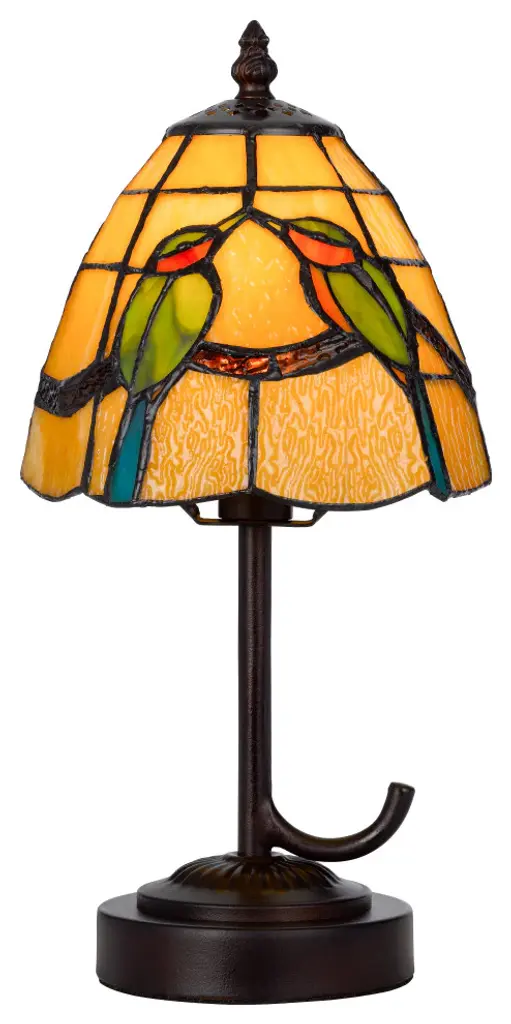 Add a pop of color to your home with this stained glass tiffany accent lamp. It features a dark bronze finish color and a hand-painted tiffany glass shade. It also has a weighted base for added stability and a pull chain switch.