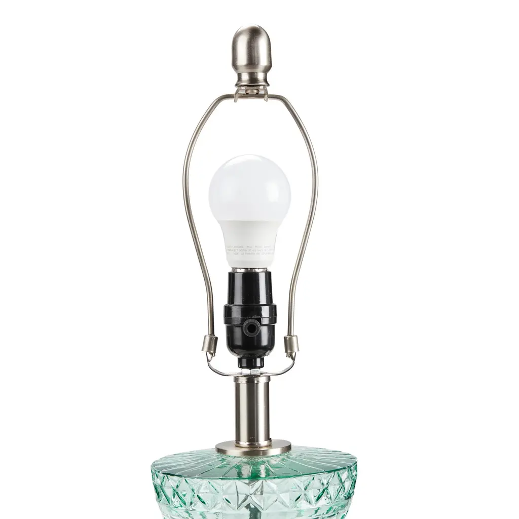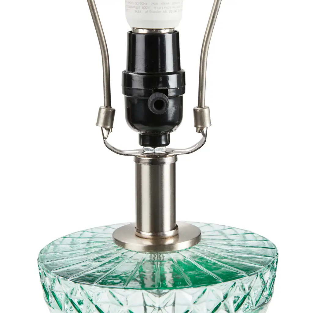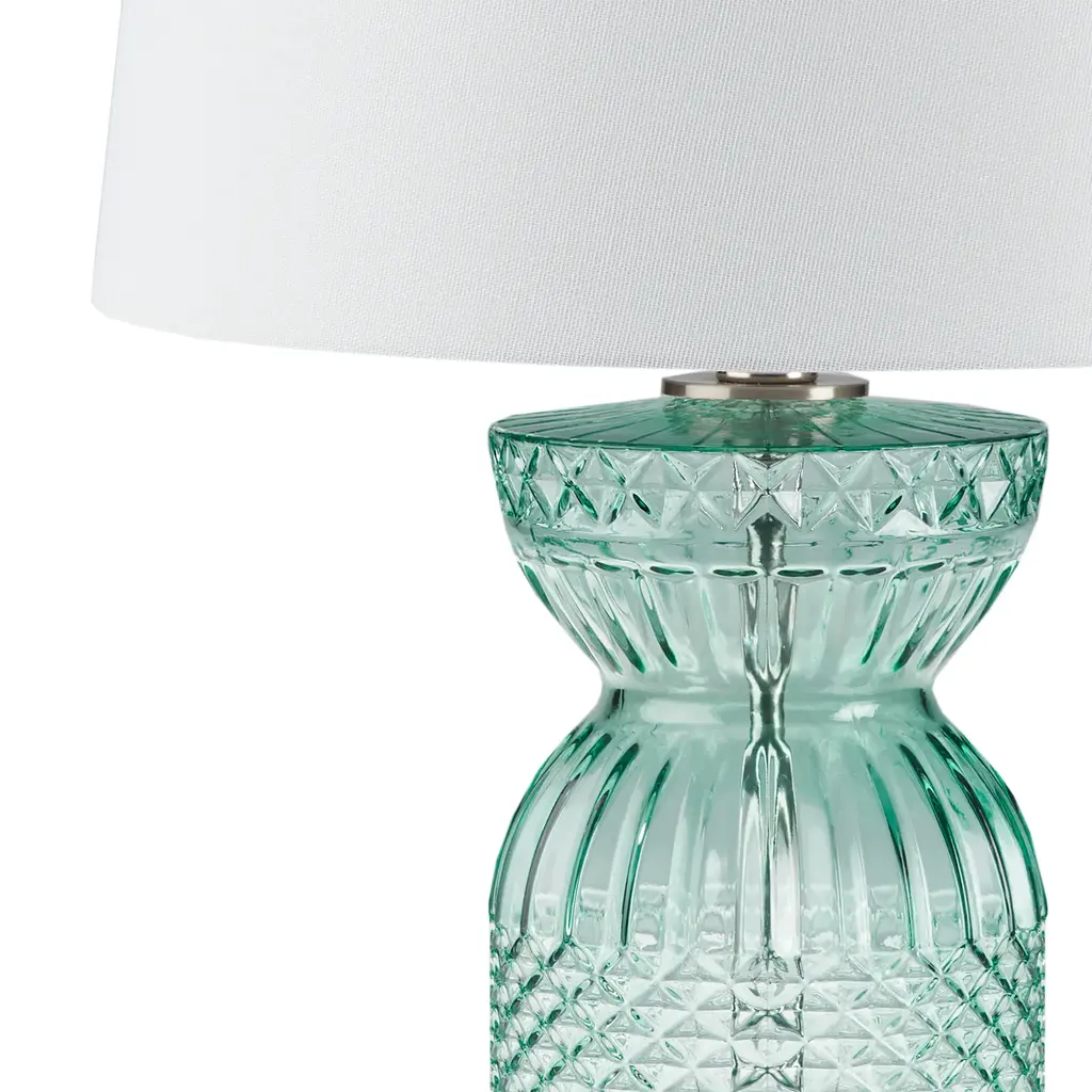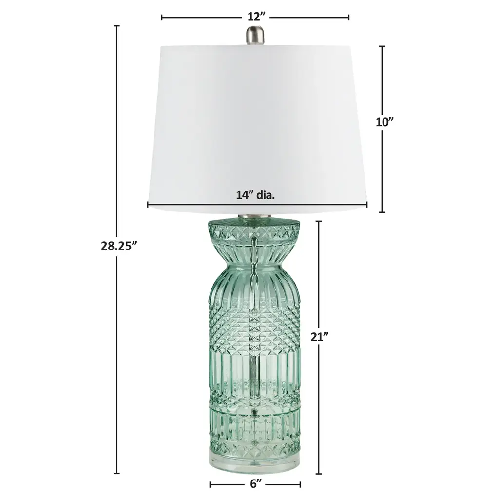 Elevate your decor with this textured glass table lamp. Merging classic and modern with a clear acrylic base and a crisp white tapered drum shade. 2-year warranty.Features:Dimensions: