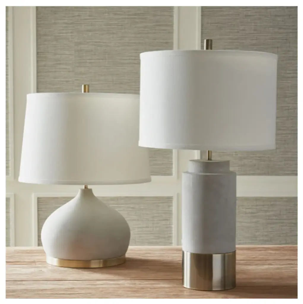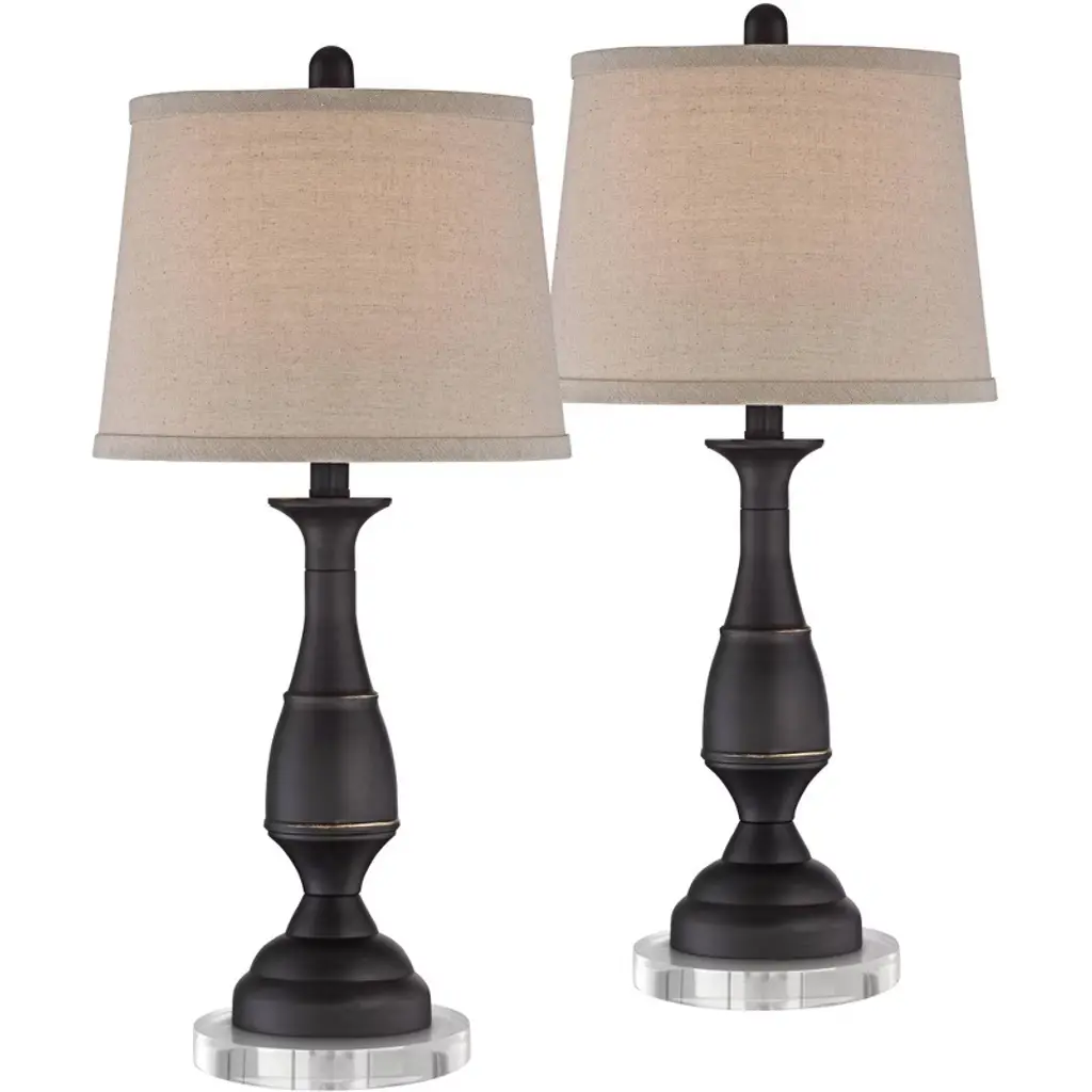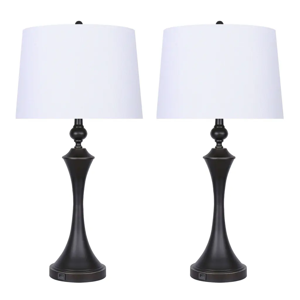 The Ashland table lamp is constructed with durable metal and has a black antique brass finish. They are sold as pairs and feature a circular weighted base. It also has a unique brushed metal pear-shaped body, which features a polished style.