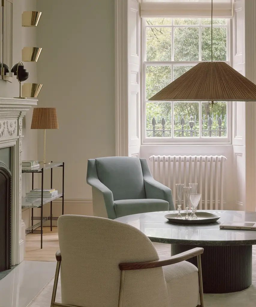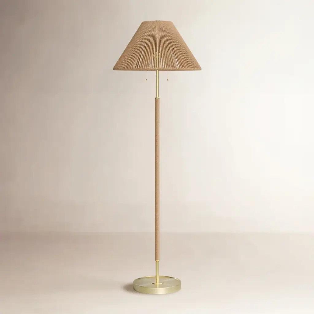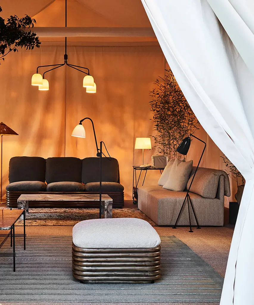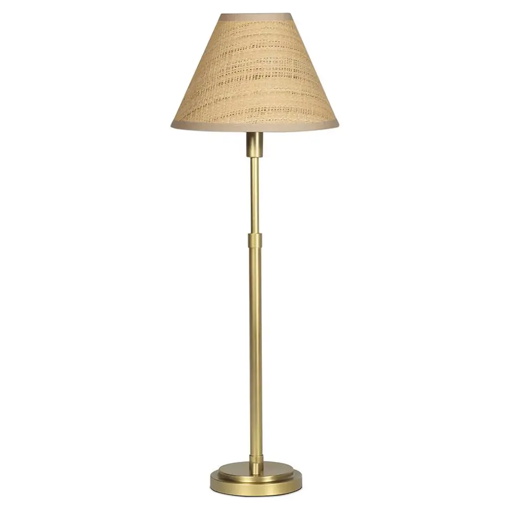First produced around 1950, the 9205 is a classic, almost archetypal, table lamp with an unmistakable Tynell aesthetic. Elegant and slender, the lamp’s apparently simple form conceals an extraordinary degree of craftsmanship and highly skilled hand-making. The canvas model's shade is constructed by attaching the fabric to a liner, which is then manually fixed onto a wire frame, while the bamboo is made from a series of slats first sewn together by hand to form a pleated mat before being connected to the liner and frame – a contemporary update to the ryegrass cane used in Taito’s original model. The stem is milled with a rattan-like pattern, created by a metalsmith using a lathe with great precision and attention to detail to mimic the effect of a series of overlapping strips. A brass plate, screwed into the stem, keeps the shade in place.Produced by Danish design publisher, Gubi.