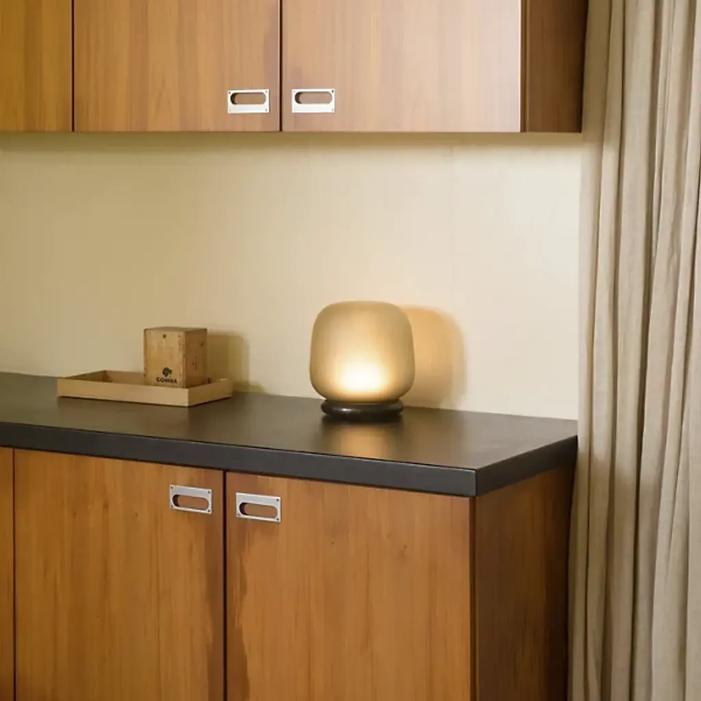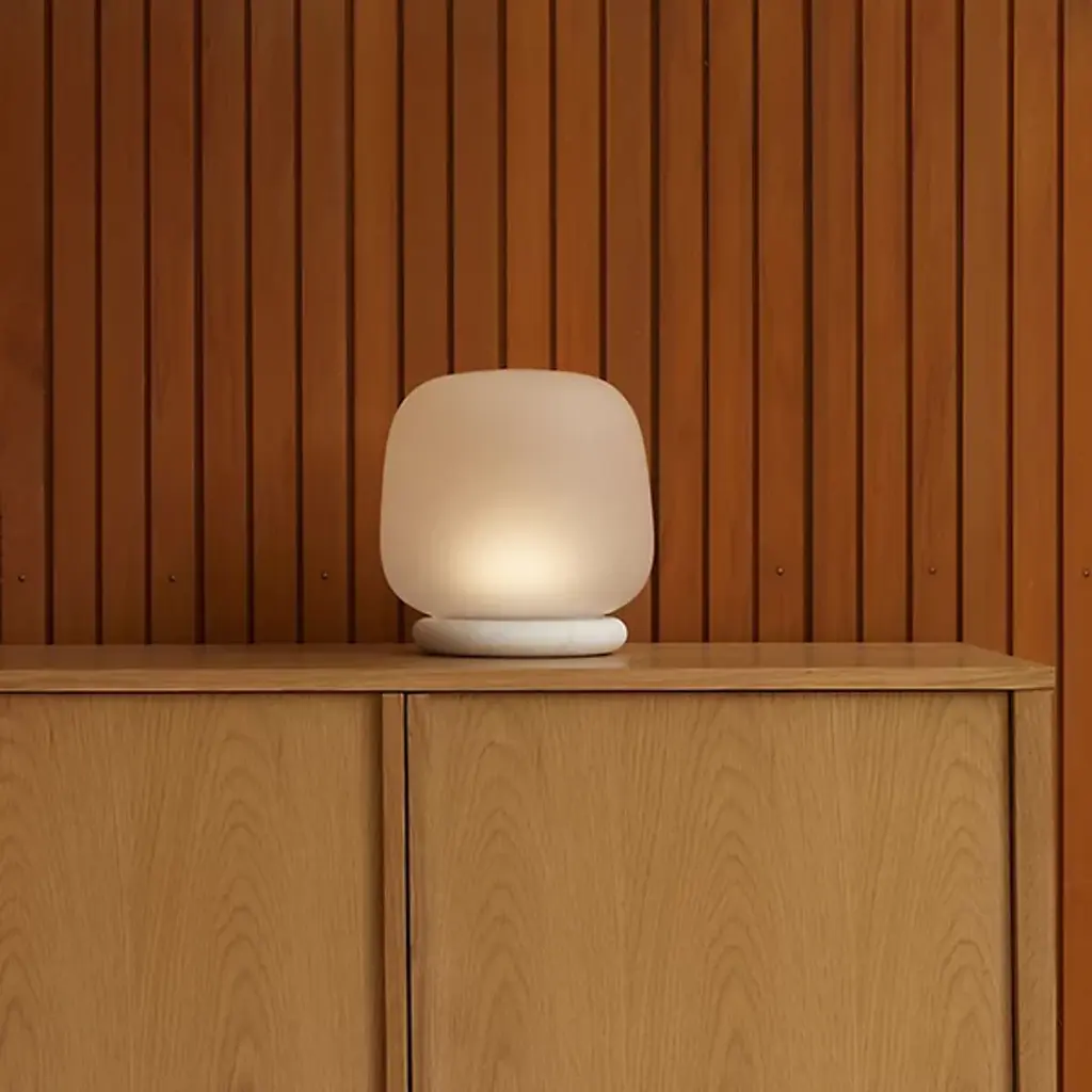Add a soft and generous glow to inside spaces with the AB LED Table Lamp from CITTA. A soothing ultra-modern design from the mind of Alex Buckman, it’s the subtle reinterpretation of the award-winning AB pendant as a coordinating table lamp, showcasing simple, organic forms. The fixture ascends from a round-edged marble disc base, placing authoritative yet energy-efficient LED lamping at its center and inside the confines of a rounded diffuser-style shade fashioned from glass hand-blown into a fixed mold with an individual character unique to each lamp. The translucent glass mellows direct glare, creating an even, ambient glow.