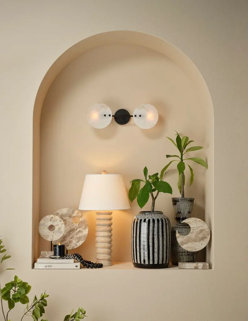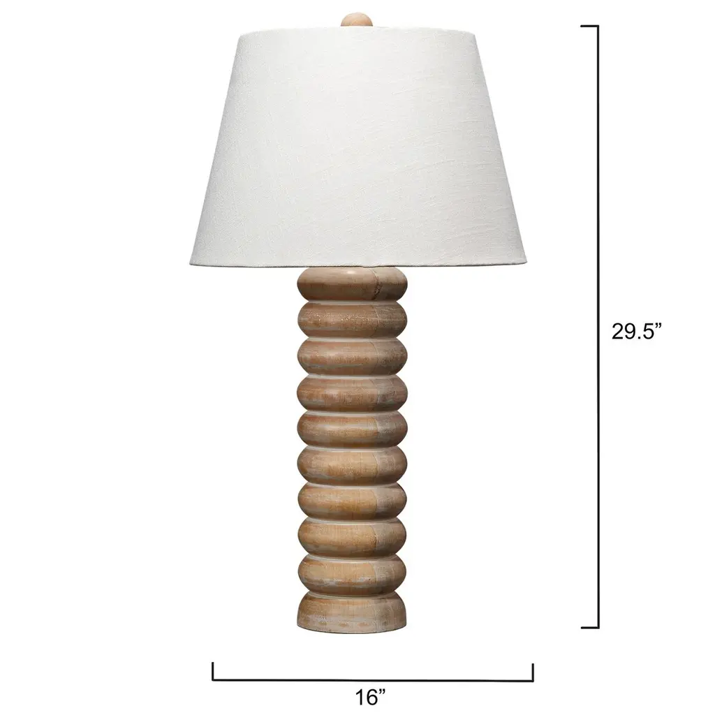 Masterfully carved of mango wood, this attractive, uncomplicated table lamp was inspired by the beads on ancient counting devices. The finish on the wood base is slightly textured and semi sheer, revealing the beauty of the sustainable hardwood beneath. Each is topped with a tapered shade in creamy linen and a coordinating wood finial.