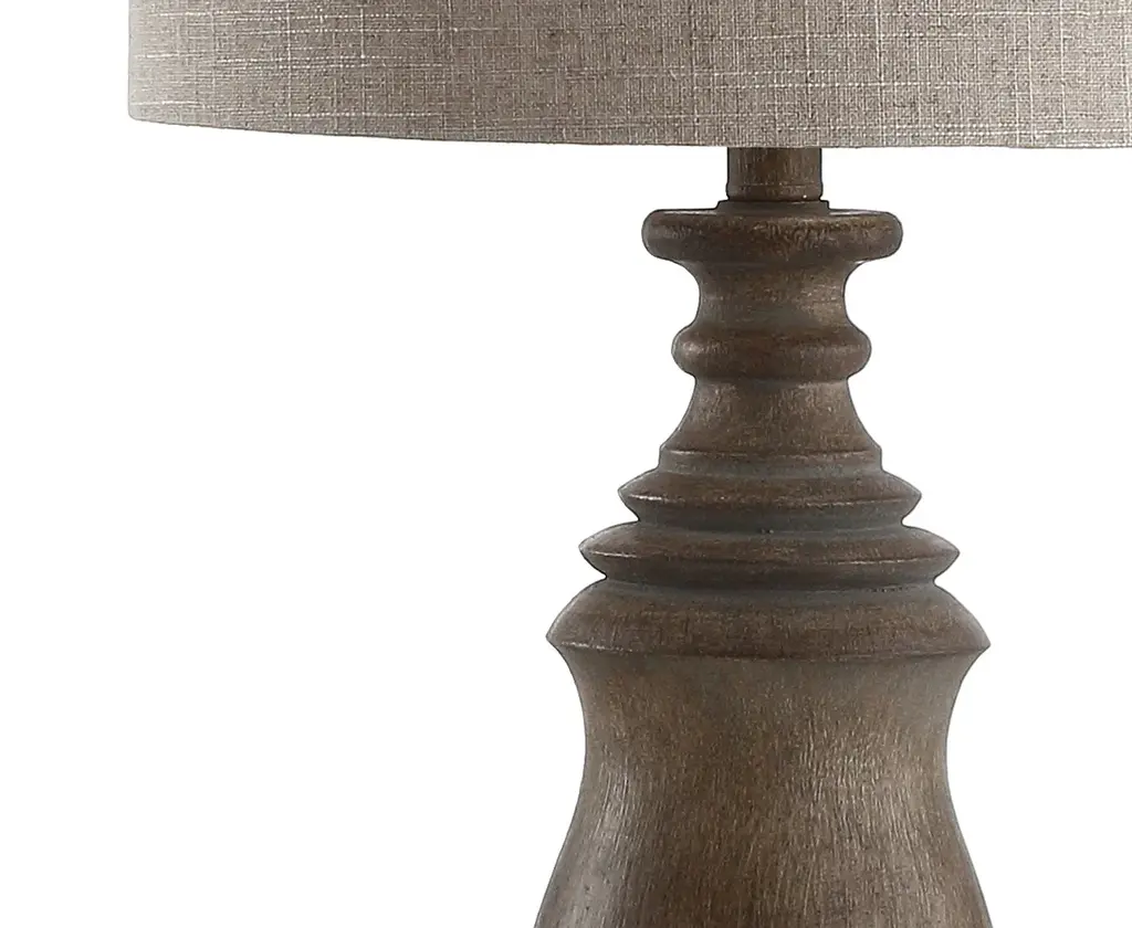 Add style and light to your home with this classically turned base crafted from faux wood. The resin used to construct it is sturdier and longer lasting than a natural wood, while appearing virtually indistinguishable from the real thing. We love the curves of the balustrade-inspired base, especially when paired with a classic linen drum shade.