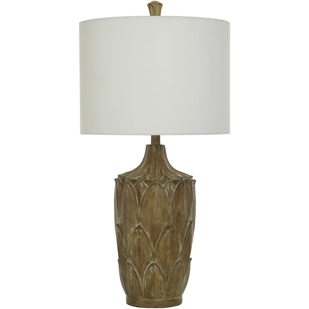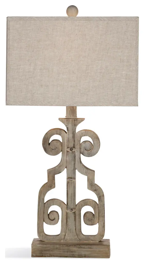 The Abigail Table Lamp is crafted with an ornately carved wood lamp body. The brown, whitewashed wood lamp is completed with a rectangular white linen lamp shade.Features:The ornate carved wood table base give a French country style to the Abigail table lampFeatures a rectangular shaped, white linen lamp shadeFeatures a turn-knob lamp switchLamp cord measures 60" allowing for easy placementBulb type a required, not includedEasy assembly - just attach harp, finial and shadeFor over a century, Bassett Mirror has been synonymous with style and quality, transforming homes with its sophisticated and timeless designs. With a wide-ranging collection of furniture, lighting, mirrors, and art, Bassett Mirror seamlessly blends modern style with classic appeal. From rustic modern to luxe glam, each piece is thoughtfully crafted to inspire and elevate any space. Committed to exceptional value and customer care, Bassett Mirror makes it easy for homeowners to create beautiful, personalized interiors with confidence.