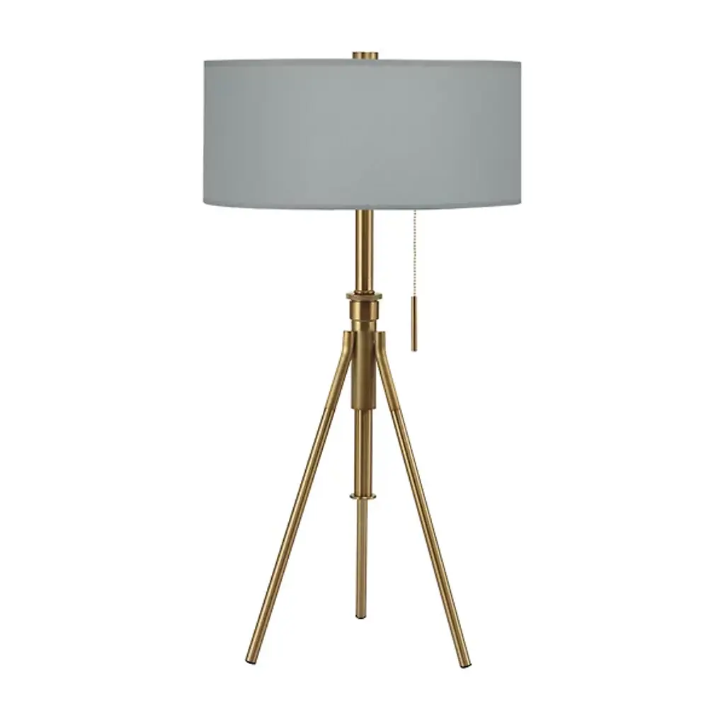 The Abigail Table Lamp from Seascape Lamps is a downright handsome piece, charming over an end table with time-honored elements. As a tripod design, you won't have to worry about this sturdy lamp tipping over. The adjustable tripod helps you get the light at just the right height, making it ideal for impromptu reading sessions. Crafted in metal, the triangulating base produces a sharp silhouette that complements the modern space. A fabric shade on top suggests the classics in its drum shape. The hanging pull chain below clicks on the piece to generate an aura of warm, diffused light.