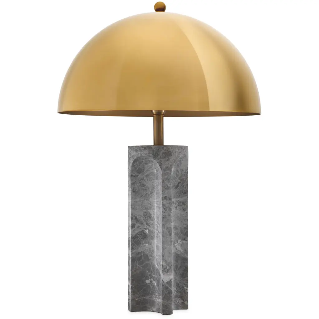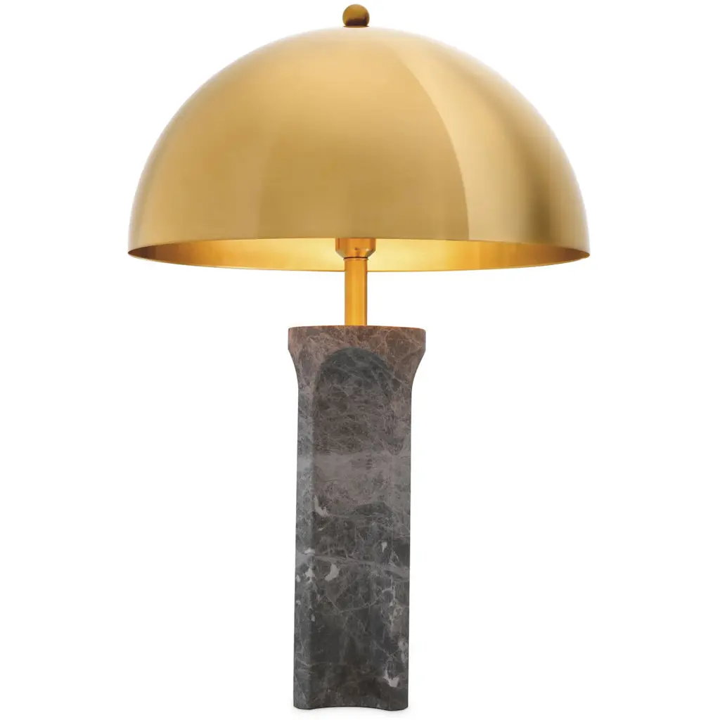 Exuding Mid-Century Modern appeal, Table Lamp Absolute is sure to impress in every living space. It will captivate you with its dome-shaped antique brass lampshade and grey marble base with alcoves on all 4 sides.