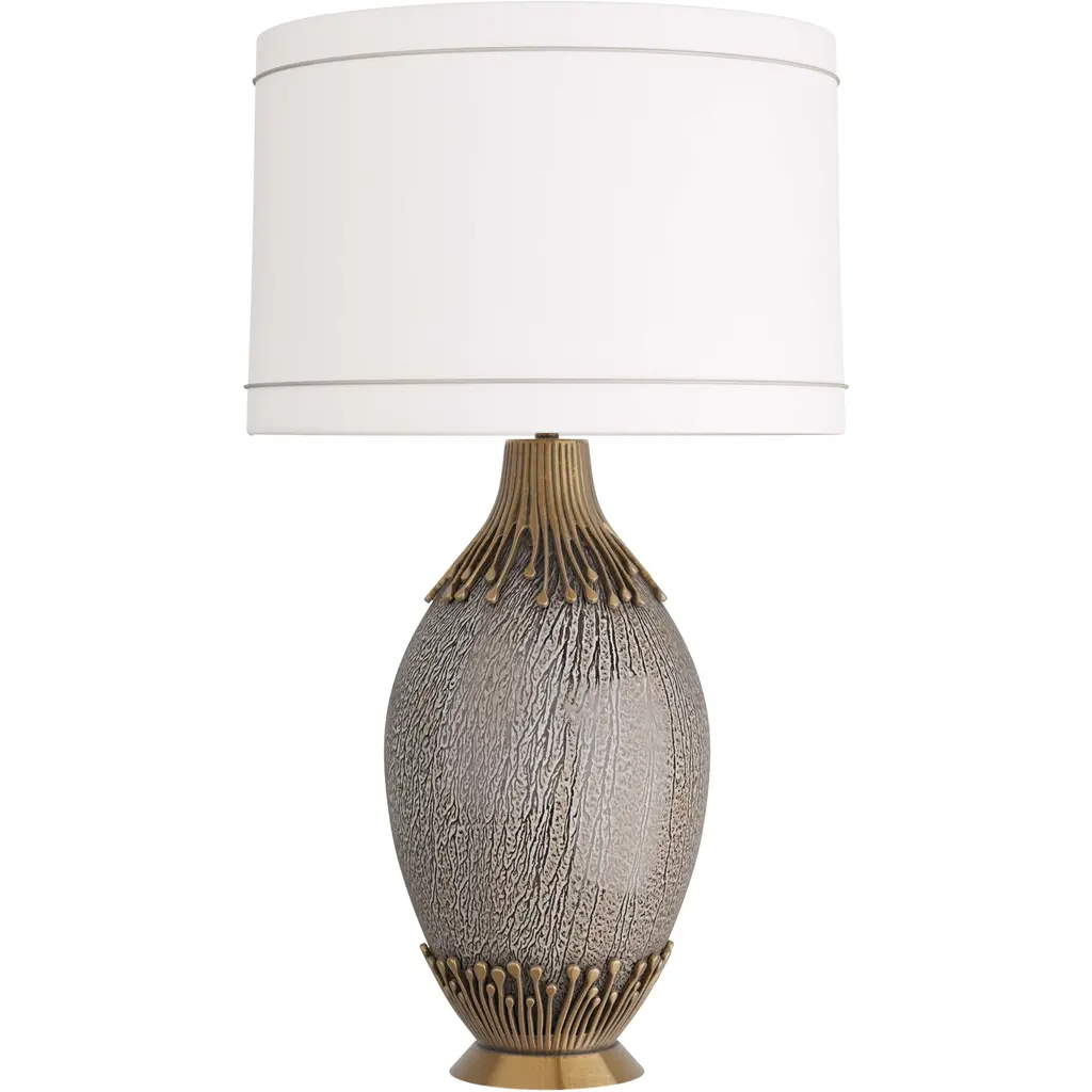 Inspired by watercolor paintings of land and sky, this lamp embraces the subtle shades of a washed picturesque view of the horizon. This piece is framed with a gold leaf border and topped with a white linen lamp shade to complete the work of art.18"L x 18"W x 33"H. Weighs 10 lbs.Hand Finished Metal with Paper and Acrylic Art Center. Linen Fabric Shade.UL listed. Uses one max 150W Type A bulb (not included). 3 way socket switch.Heirloom Quality - Expertly hand crafted and hand finished. Due to the hand crafted nature of this piece, each piece may have subtle differences.