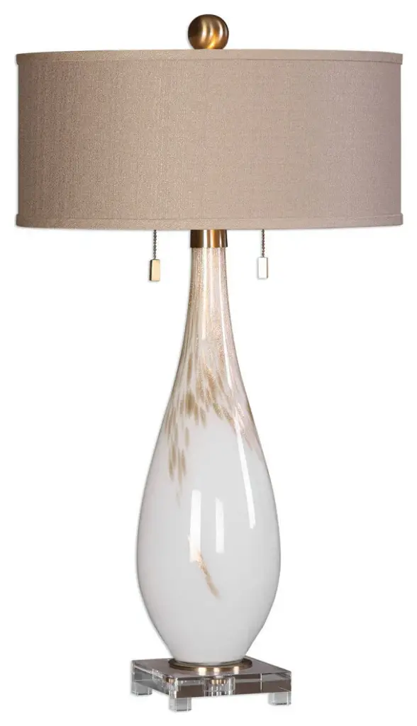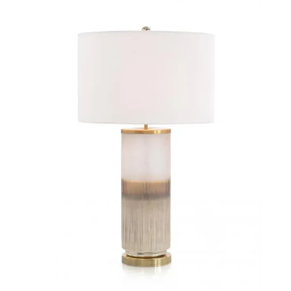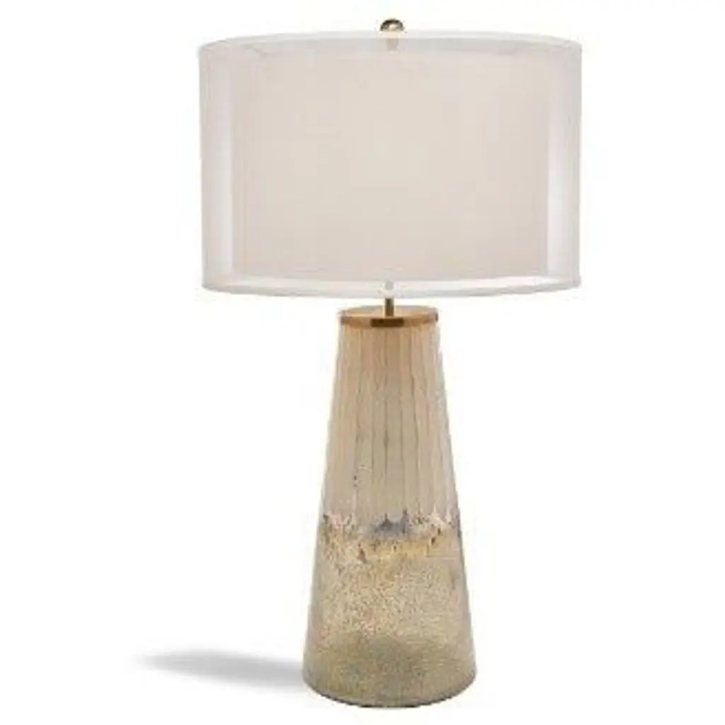 Inspired by watercolor paintings of land and sky, this lamp embraces the subtle shades of a washed picturesque view of the horizon. This piece is framed with a gold leaf border and topped with a white linen lamp shade to complete the work of art.18"L x 18"W x 33"H. Weighs 10 lbs.Hand Finished Metal with Paper and Acrylic Art Center. Linen Fabric Shade.UL listed. Uses one max 150W Type A bulb (not included). 3 way socket switch.Heirloom Quality - Expertly hand crafted and hand finished. Due to the hand crafted nature of this piece, each piece may have subtle differences.