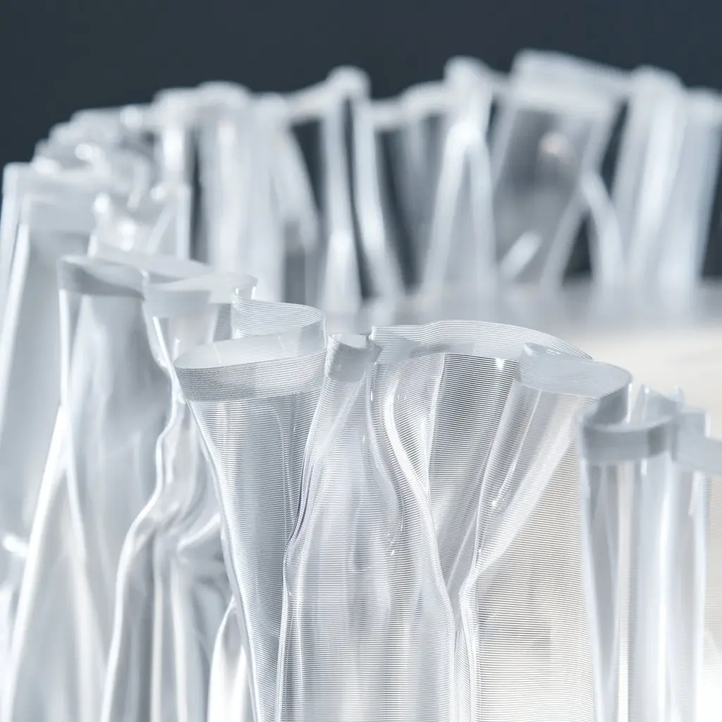 The Accordéon collection represents a new narrative in contemporary design: Slamp’s exclusive Lentiflex® material is heated and hand moulded by the women who tailor light. Every piece is one of a kind, but the lamps are identical. A thin steel plaque on the side of each lamp is inscribed with “Handmade in Italy”, attesting to the product’s unique design. The internal structure and clasp match the fluidity of the external plissé diffusor and prevent the accumulation of dust. The lamp has dual switches, one for the shade and another for the base. Both light sources can be used together, and cast a uniform glow and a cotton-like silhouette. The table lamp’s shade and sockets are have magnets to facilitate cleaning and changing the bulbs.