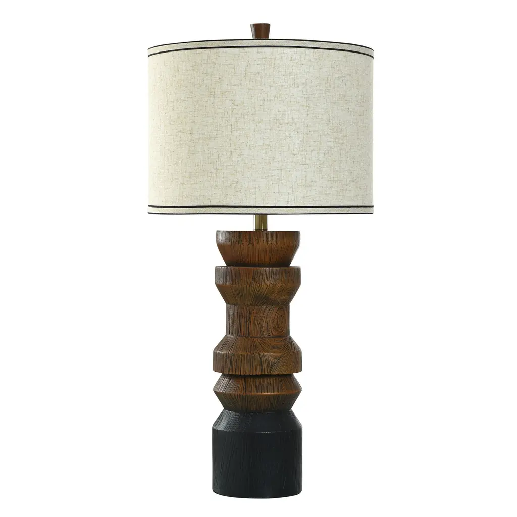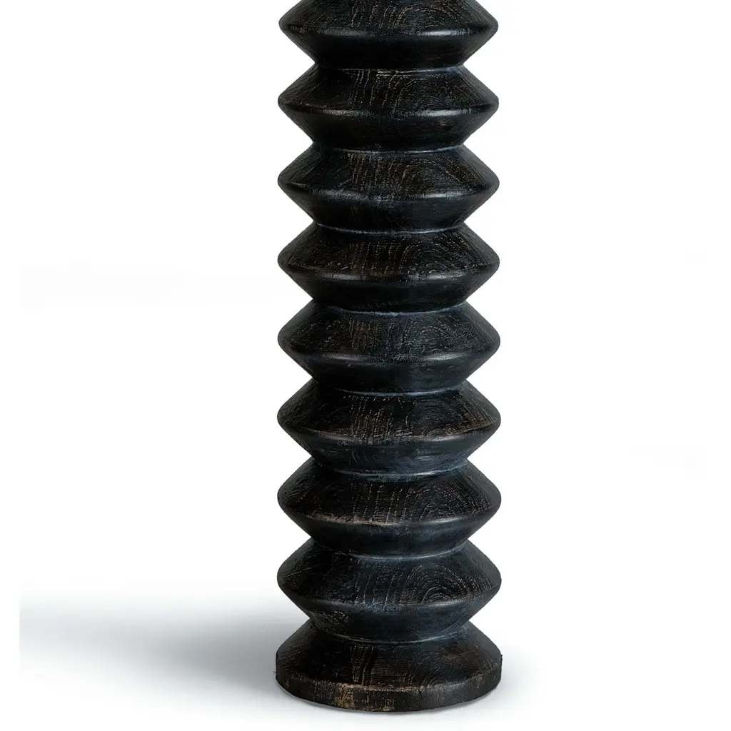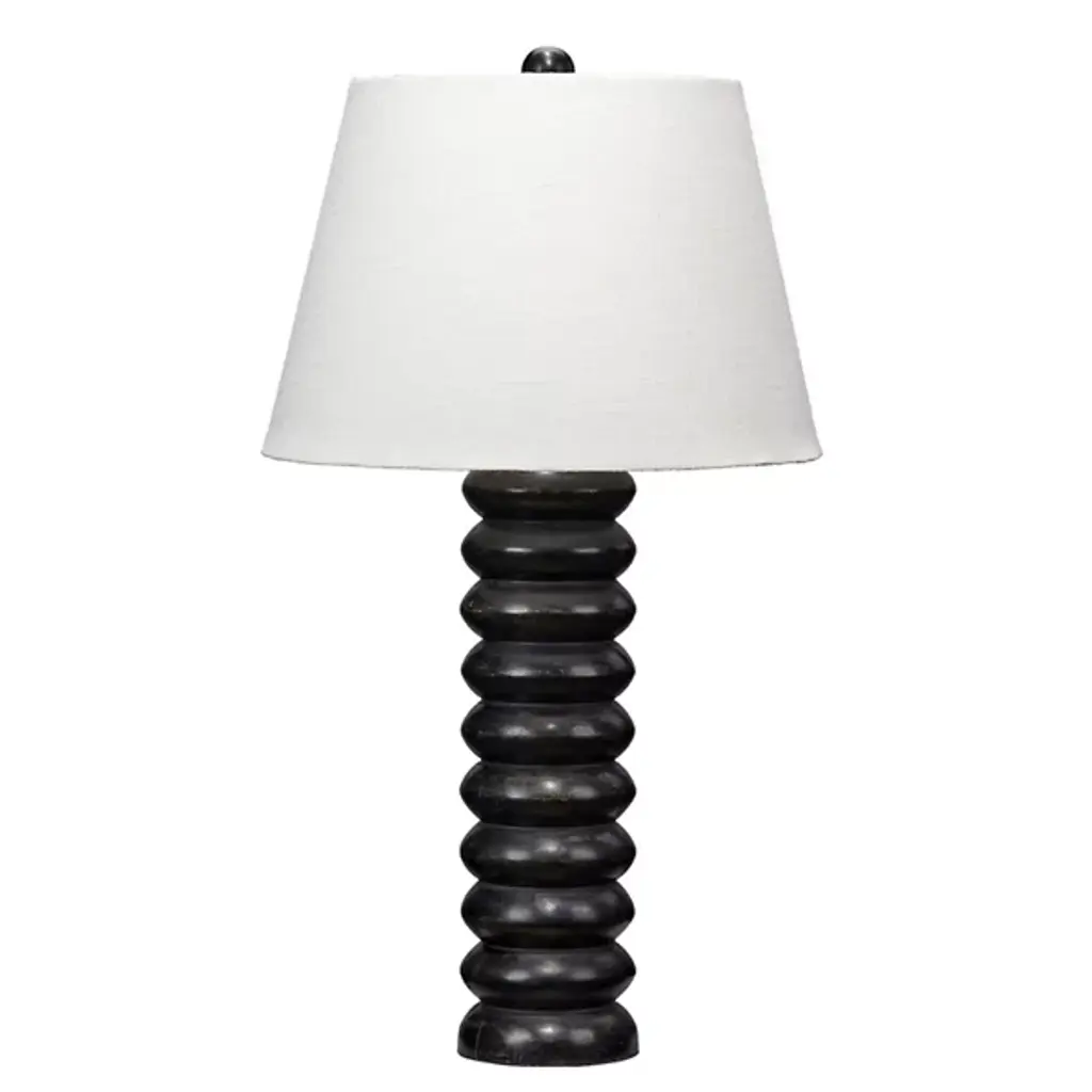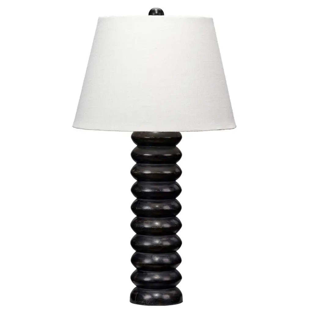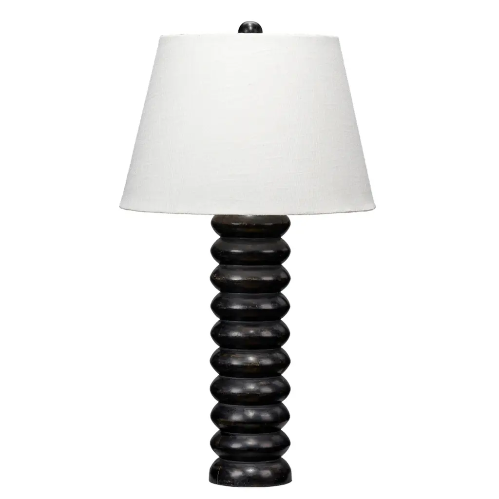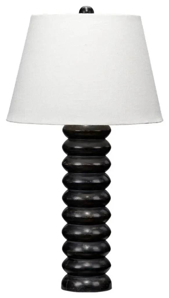 The Accordion is a gorgeous birch table lamp, which instantly draws in the eye with its deeply grooved body, pronounced grain, and ebony finish. A natural linen shade finishes the look with stunning contrast.