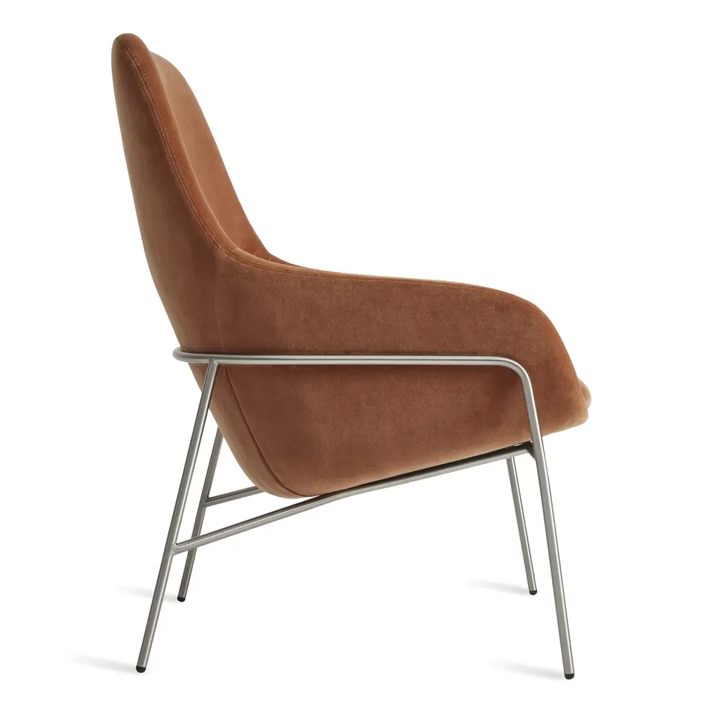 A design inspired by the classic Field Chair, the Acre Lounge Chair from Blu Dot is slightly smaller in stature, but equally as elegant and sought-after. Featuring a steel tube base topped with a contoured upholstery-wrapped foam seat, this lounge chair showcases a tucked seam back detail for visual appeal and additional lumbar support for hours spent reading or relaxing in style. Station in a sunny corner accented by a solid wood side table to rest a book or a drink and finish off with a statuesque reading lamp to craft a cozy and refined reading nook you didn't know you needed. Highlights