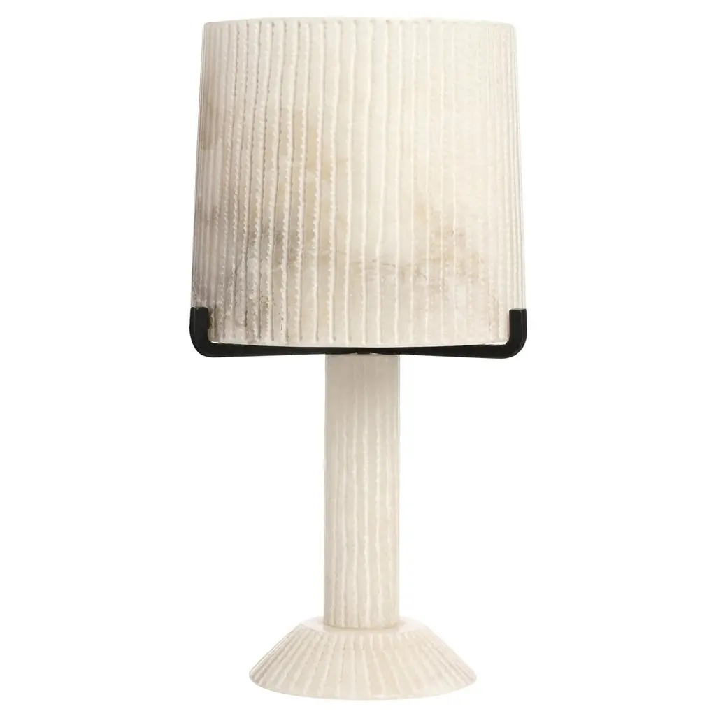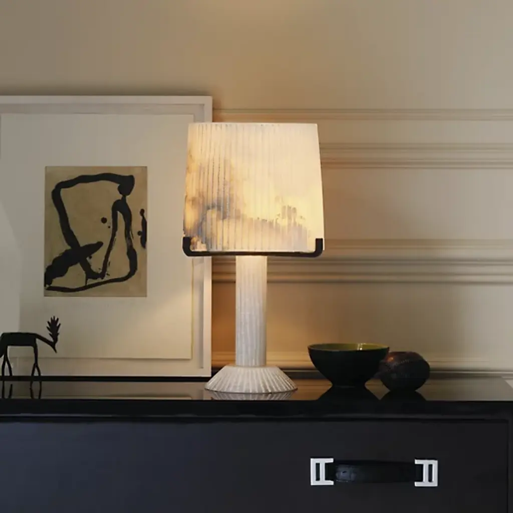 Add an enduring, sculptural accent to The Acropolis Table Lamp from CTO Lighting. An artful admixture of alabaster and steel rising from a beveled base, it sends up a vertically-lined column body to seat strong, single-socket lamping beneath a slightly flared shade of the same material, held in place by a steel bracket. The fine striations across the natural alabaster add sculptural appeal to the fixture’s surroundings, with the natural surface taking on a warm sheen of reflected radiance.
