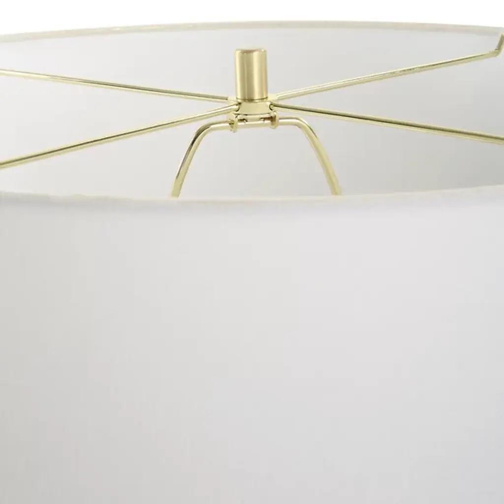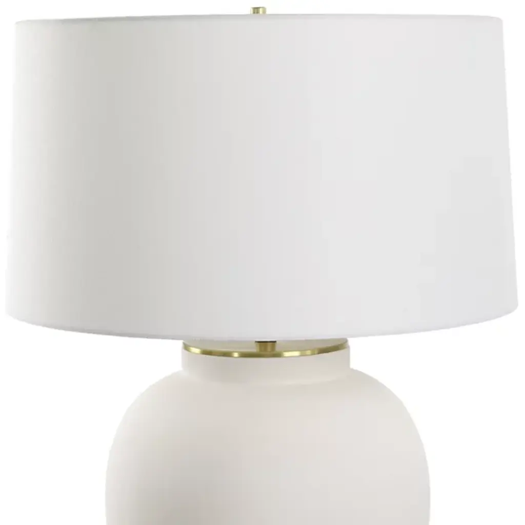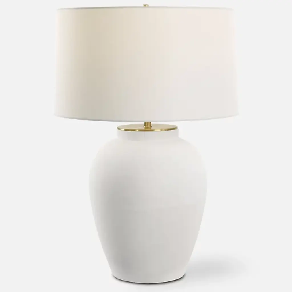 Discover timeless elegance with the Adelaide Table Lamp, boasting an oversized chalk white ceramic base adorned with delicate, lightly antiqued brass plated details. Its classic design exudes sophistication, while the slightly tapered round hardback shade in white linen fabric adds a touch of refinement. Illuminate your space with style and grace, as this lamp seamlessly blends traditional charm with modern appeal, perfect for enhancing any interior décor scheme.