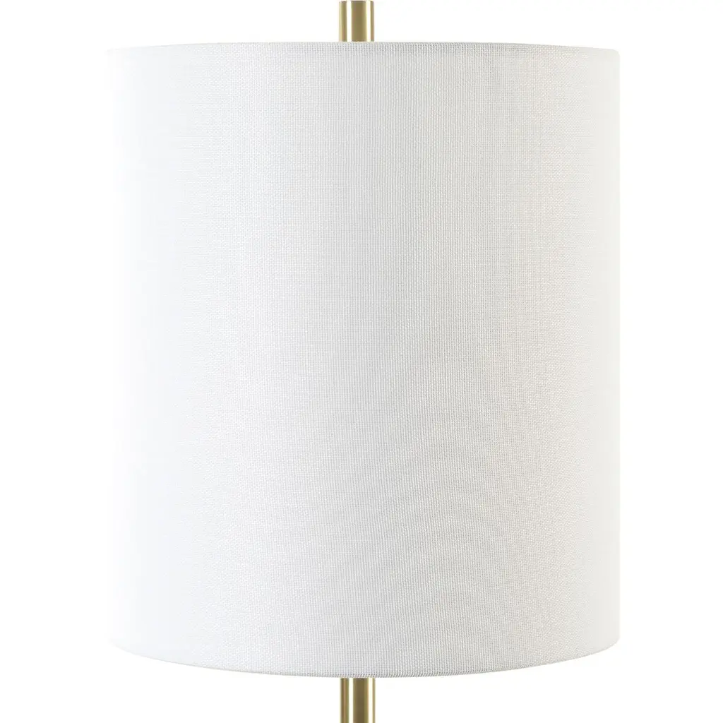 The Adele Buffet Lamp is a stunning piece that exudes elegance and sophistication. Its art glass body, paired with refined brass details, creates a captivating visual appeal. The lamp is complemented by a tall drum hardback shade, enveloped in crisp white linen, adding a touch of classic charm. This exquisite lamp is designed to enhance any space with its graceful presence and timeless style.