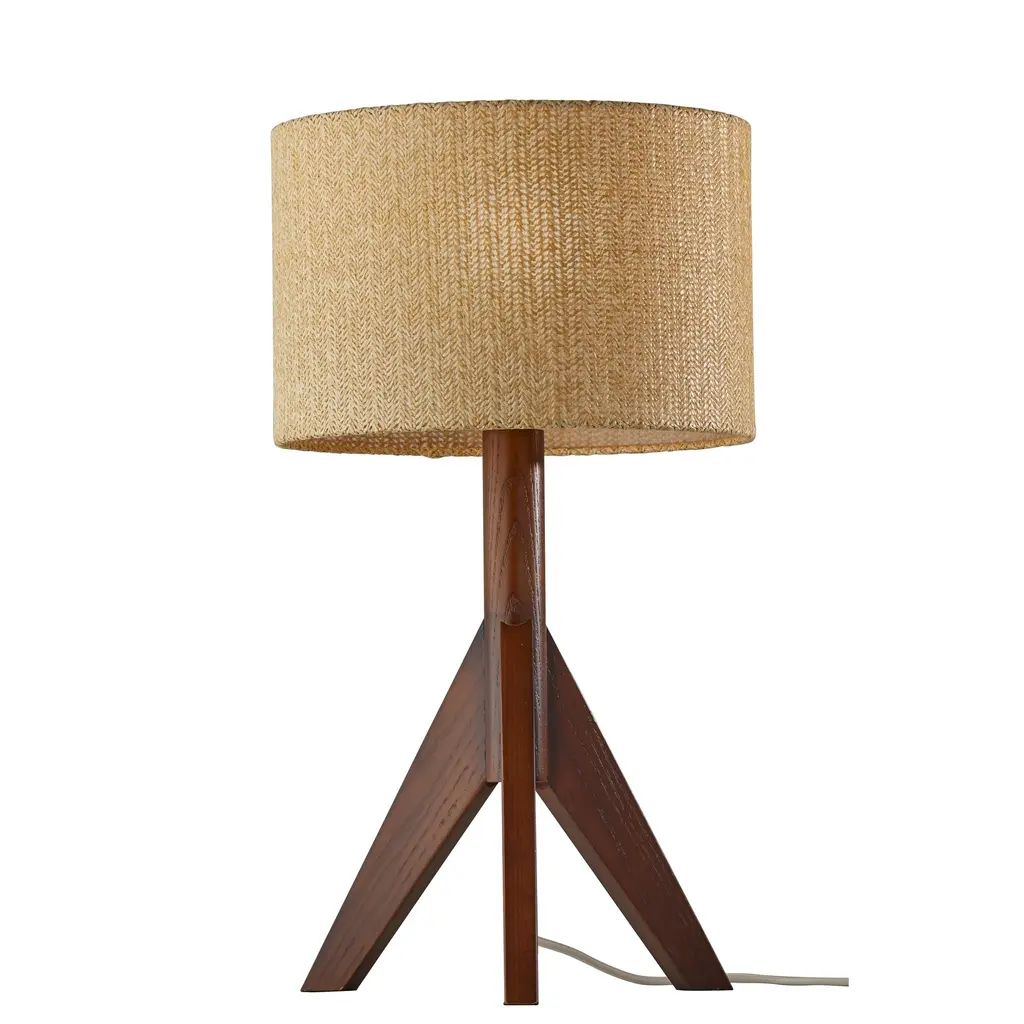 The beauty of the Eden Table Lamp lies in the materials. A natural ash wood or sustainable walnut rubberwood composes the tripod base of this lamp and is offset by a textured grey felt or woven natural paper tapered drum shade. This simple and rustic design is finished off with a black and white fabric covered cord hanging from the center wood pole that adds a modern flare. A 3-way rotary socket which controls a bulb up to 100W or an equivalent CFL. The 3-way rotary socket switch will only work with a 3-way light bulb, otherwise this lamp will function with simple on/off switch at its highest setting. This lamp is smart outlet compatible. Bulb is not included. Features: Natural Ash or Walnut wood finish A woven natural paper or textured grey felt shade paired with a modern tripod wood base A 3-Way switch allows for a low, medium and high light setting when using a 3-way compatible bulb Requires (1) 100-Watt Type A bulb (not included) UL listed 63-inch cord Rotary Socket Switch E26 Medium Base Title 20 compliant: No Some assembly required 1-year limited manufacturer warranty Measurements: Width is 13-inch Height is 23.50-inch Extension/Depth is 13-inch Weight is 2.86lbs Shade measures 13"Dia. x 8.5"H Base Measures 11.5" Triangle