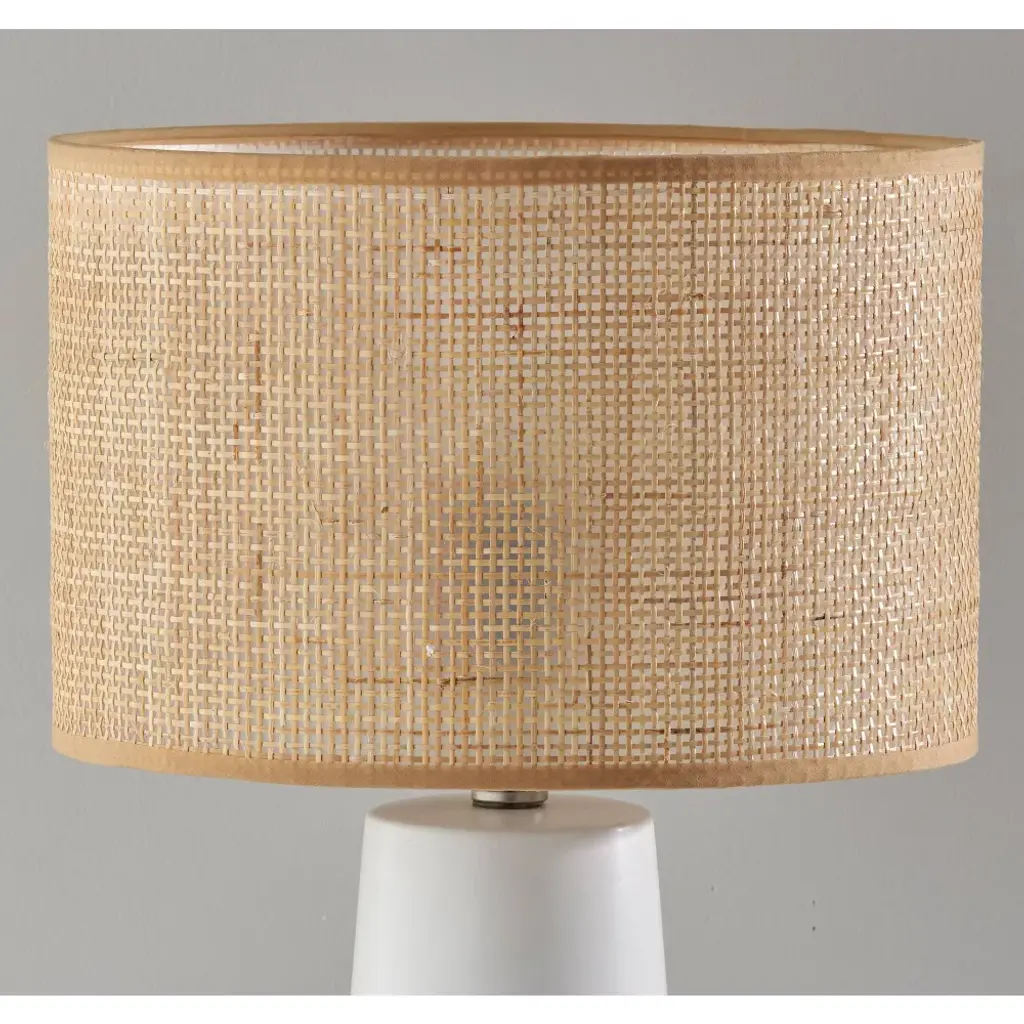 Adesso Sheffield Table Lamp White : Ceramic Base, Rattan Shade, Etl Listed, No Assembly Required