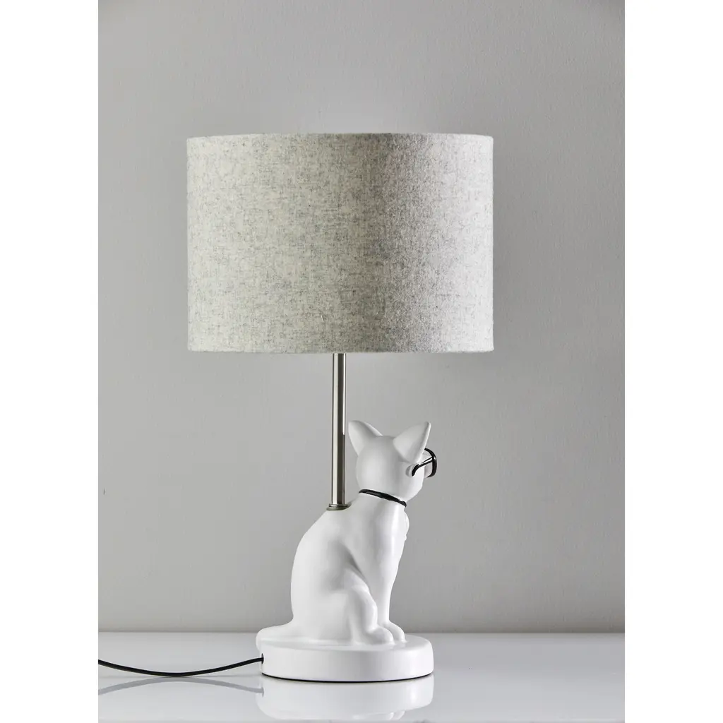 Adesso White Sunny Cat Table Lamp - White & Brushed Steel