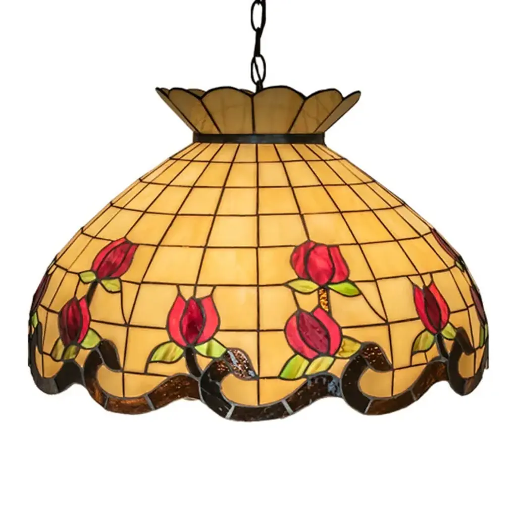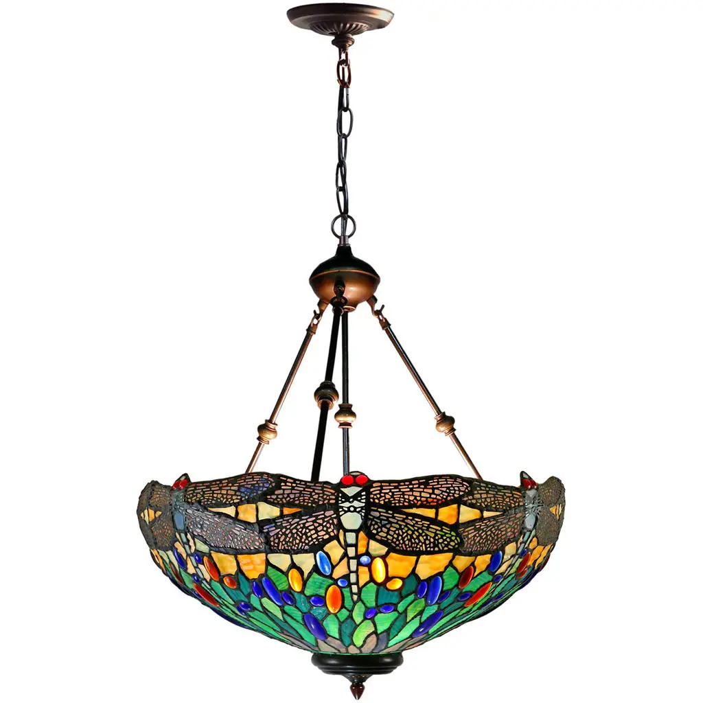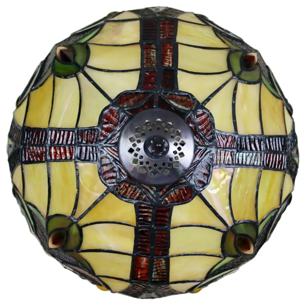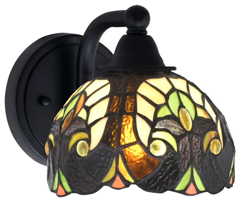 Adia is a beautiful, stained glass table lamp in a traditional Victorian style, featuring a dark bronze base and an on-cord rotary switch. This lamp would be perfect in a bedroom, living room, and dining room. The shade is hand-crafted, using the same methods developed by Louis Comfort Tiffany in the early 1900''s. This process entails using 176 hand cut stained art glass pieces and 20 glass beads, each wrapped in fine copper foil and soldered together at extremely high temperatures to form each unique piece. Exact size to the nearest inch may vary, and exact color of each glass piece may vary due to each piece being hand crafted. First image is with the light shining through, second image is with no light. Dry listed and recommended for an indoor setting.