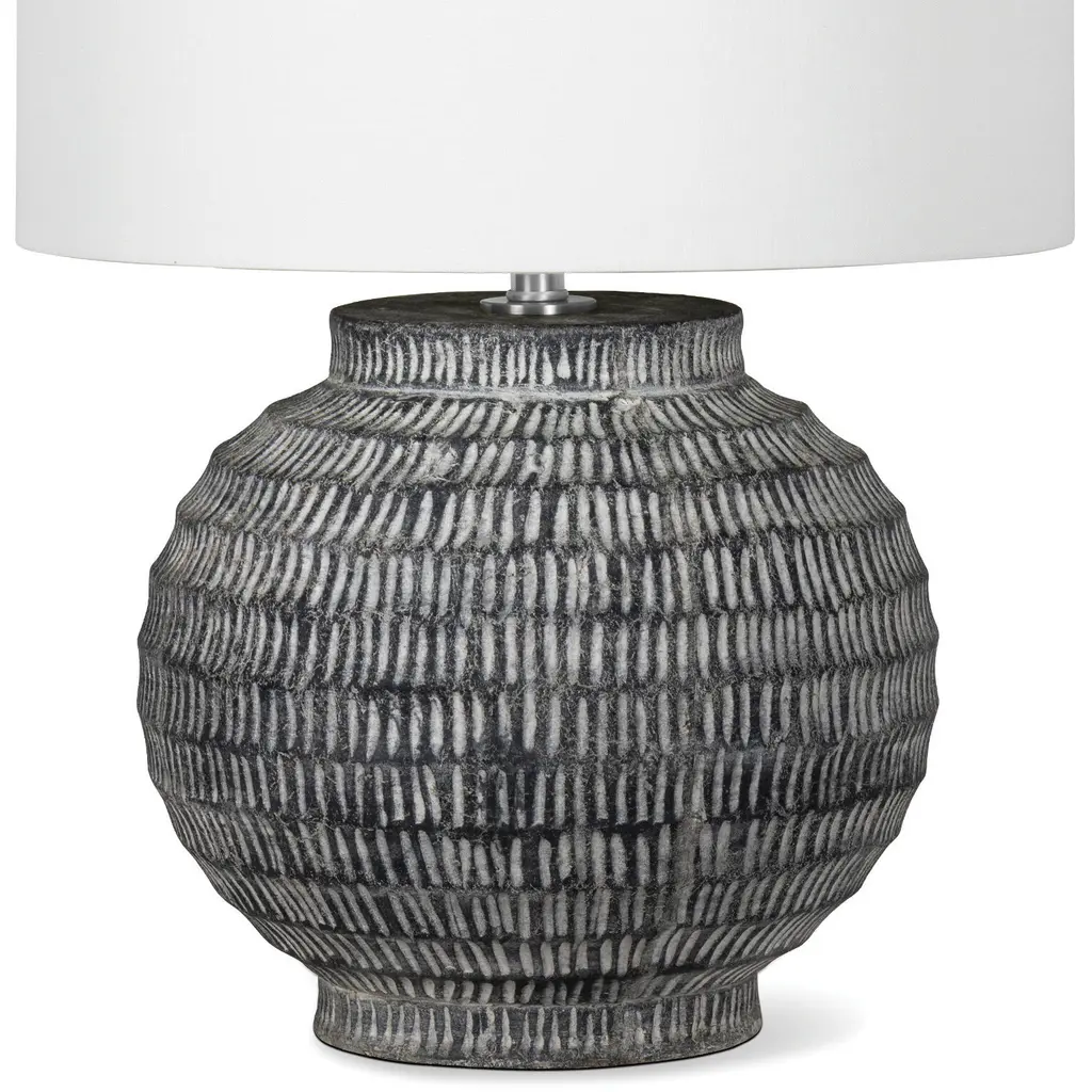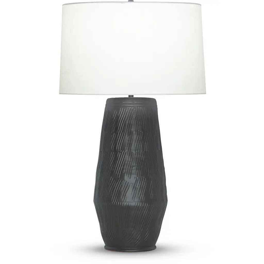 The Adobe Ceramic Table Lamp features hand-scribed chisel marks along with a natural color palette that gives the feeling it was excavated from an archaeological site. The body of the lamp is large in scale, making this a substantial light source for any room in the house.