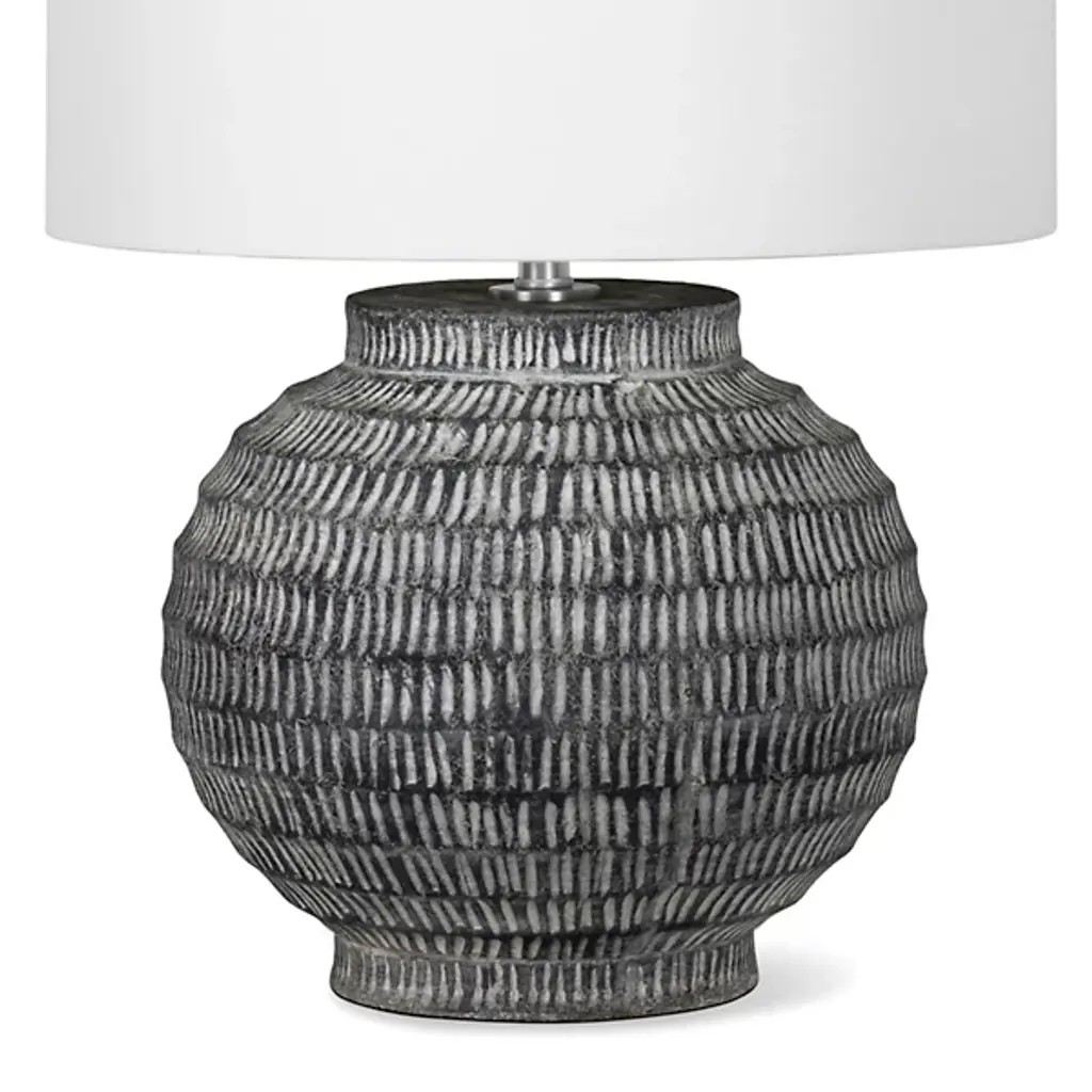 The Adobe Table Lamp from Regina Andrew brings an air of ancient mystique to modern spaces. Its hand-scribed chisel marks and earthy palette evoke images of archaeological treasures, turning each lamp into a storytelling piece. The lamp's substantial scale makes a bold statement, commanding attention whether illuminated or not. When lit, it casts a warm glow that highlights its textured surface.