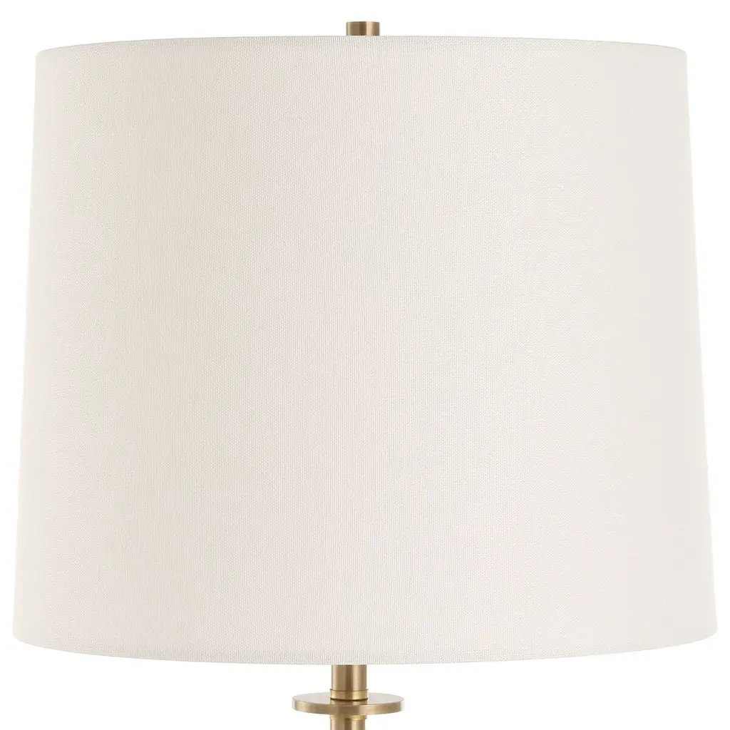 The Adrian Buffet Lamp is a masterpiece of elegance and style, designed to elevate any space with its refined presence. Its sleek, sophisticated base is crafted from plated brass, exuding a timeless allure. This exquisite base is complemented by a striking black dolomite marble orb, adding a touch of bold sophistication. The lamp is crowned with a slightly tapered round hardback shade, enveloped in a casual white linen fabric, which diffuses light beautifully, creating a warm and inviting ambiance. Perfect for those who appreciate the finer things in life, the Adrian Buffet Lamp is a testament to exquisite craftsmanship and design.