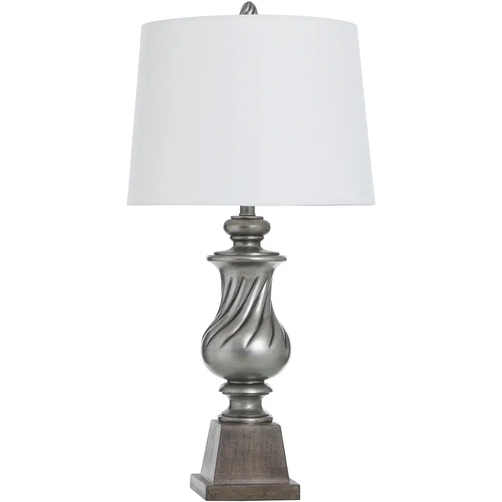 Dover Buffet Lamp in Burnished Silver Leaf with Linen Shade