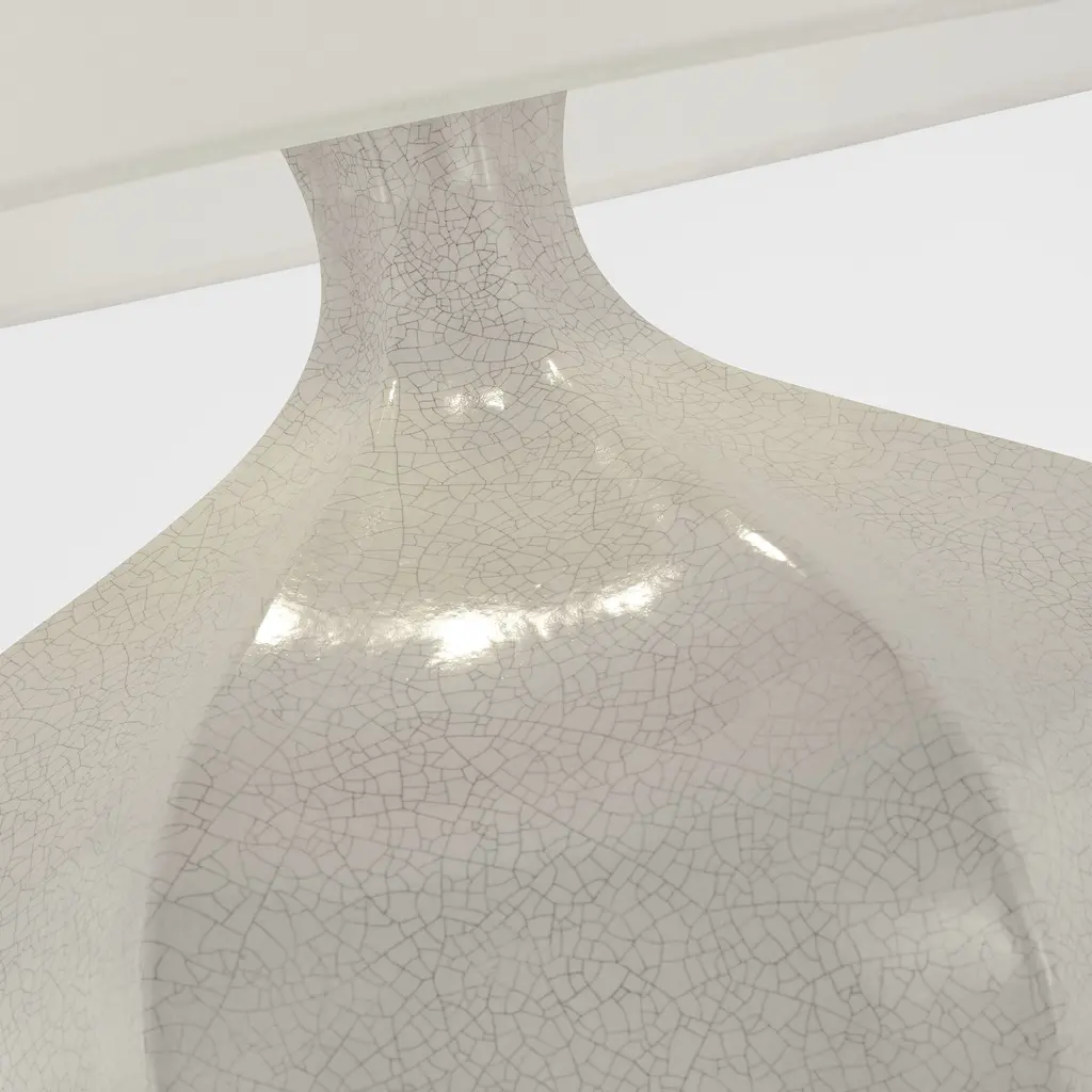 Rana Medium Wide Table Lamp in Bone Craquelure with Linen Shade