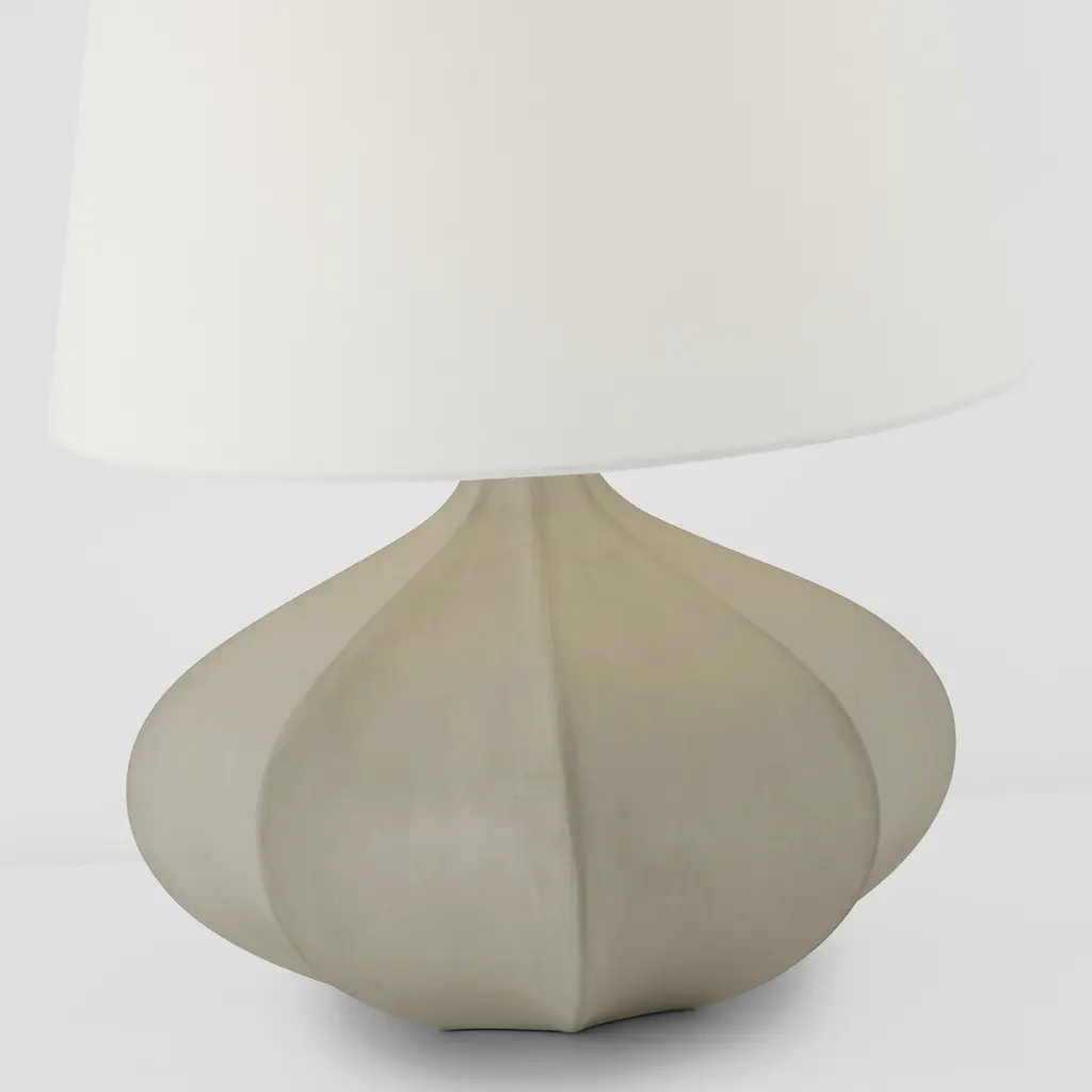 Rana Medium Wide Table Lamp in Stone White with Linen Shade