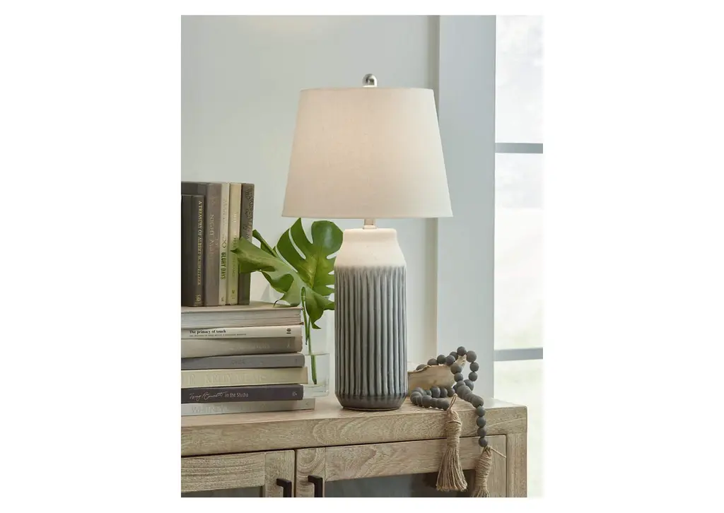 With a style you won't easily find elsewhere, the Afener lamp stands out with its own captivating flair. A glossy glaze gives the base a unique quality. Whether you love the simplicity of transitional styles or enjoy making a statement in your room design, this lamp is for you. Weight 13.000 lbs. (5.85kgs.)