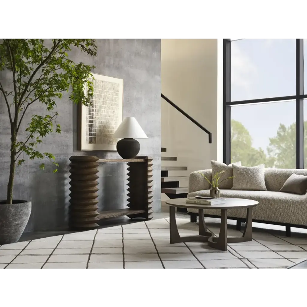 The Ahmya Table Lamp, part of the Shiga collection, is a timeless piece that blends ancient craftsmanship with modern design. Hand-turned in Japan, its body is finished with a unique black iron oxide mineral glaze, a technique deeply rooted in the traditions of the Shigaraki region’s ancient kilns. The glaze gives the lamp a textured, earthy appearance that adds character and depth to any space. Topped with a classic coolie shade, the Ahmya Lamp provides a warm, diffused light that creates a serene atmosphere.