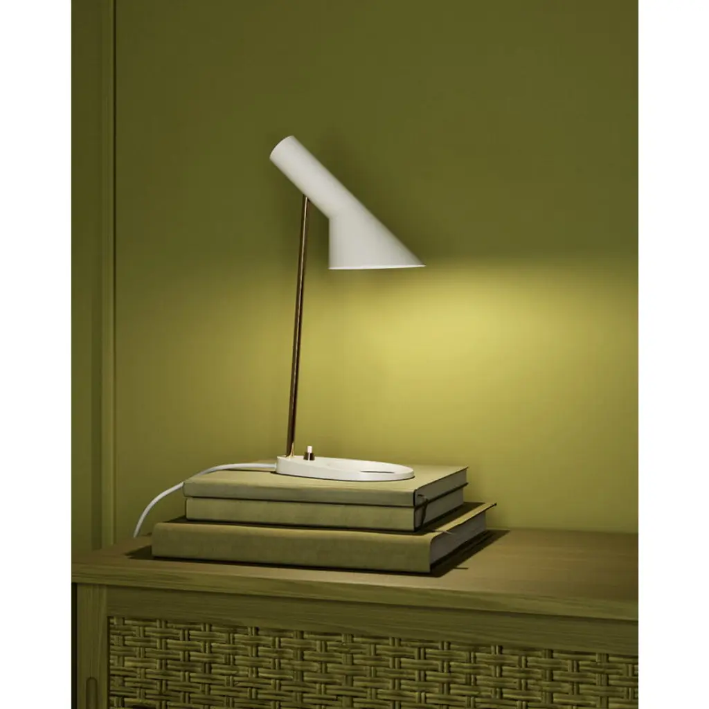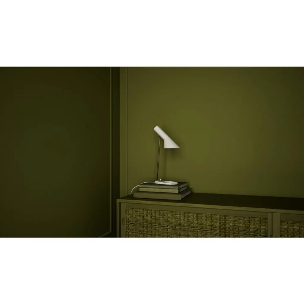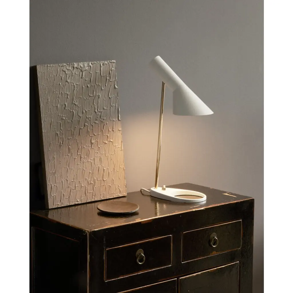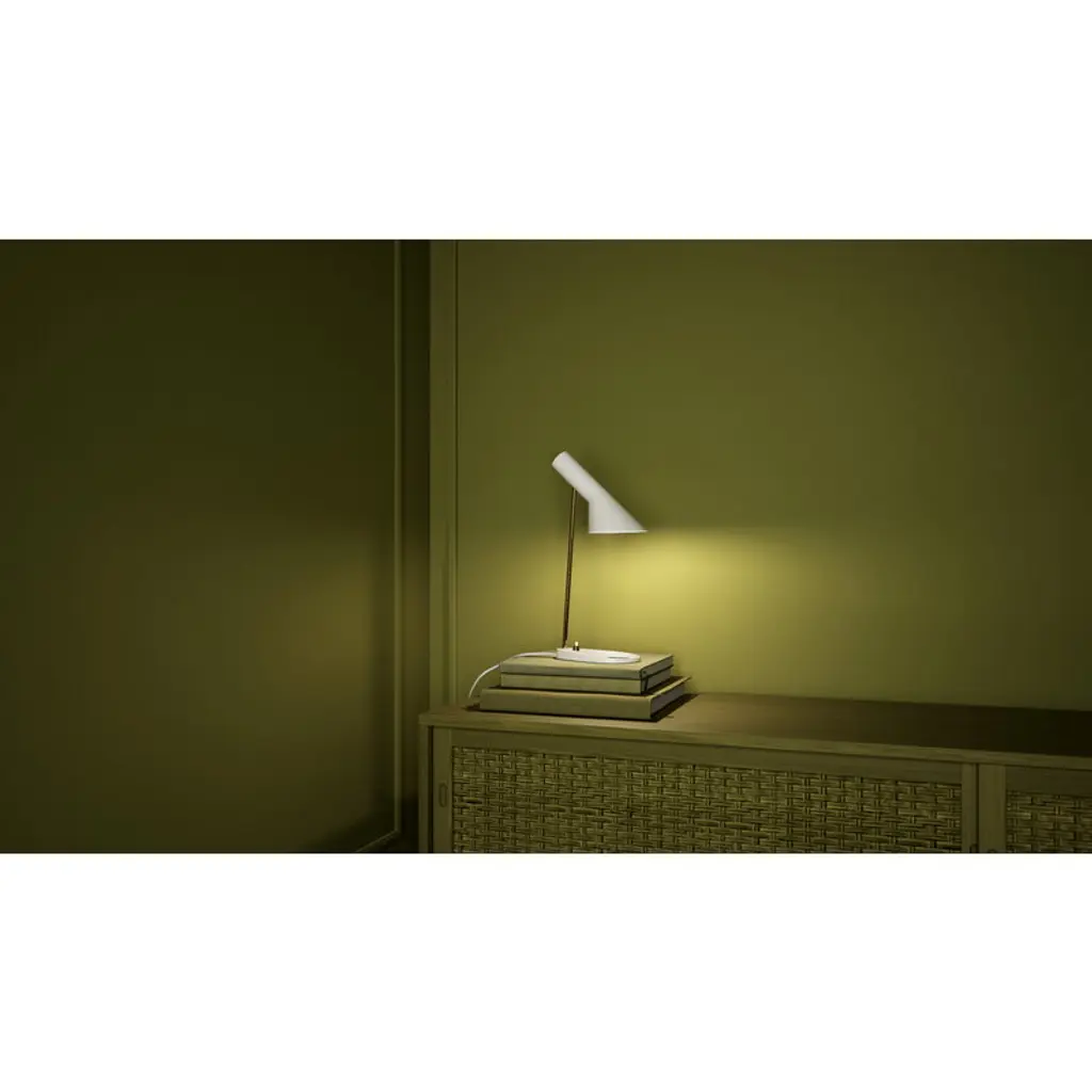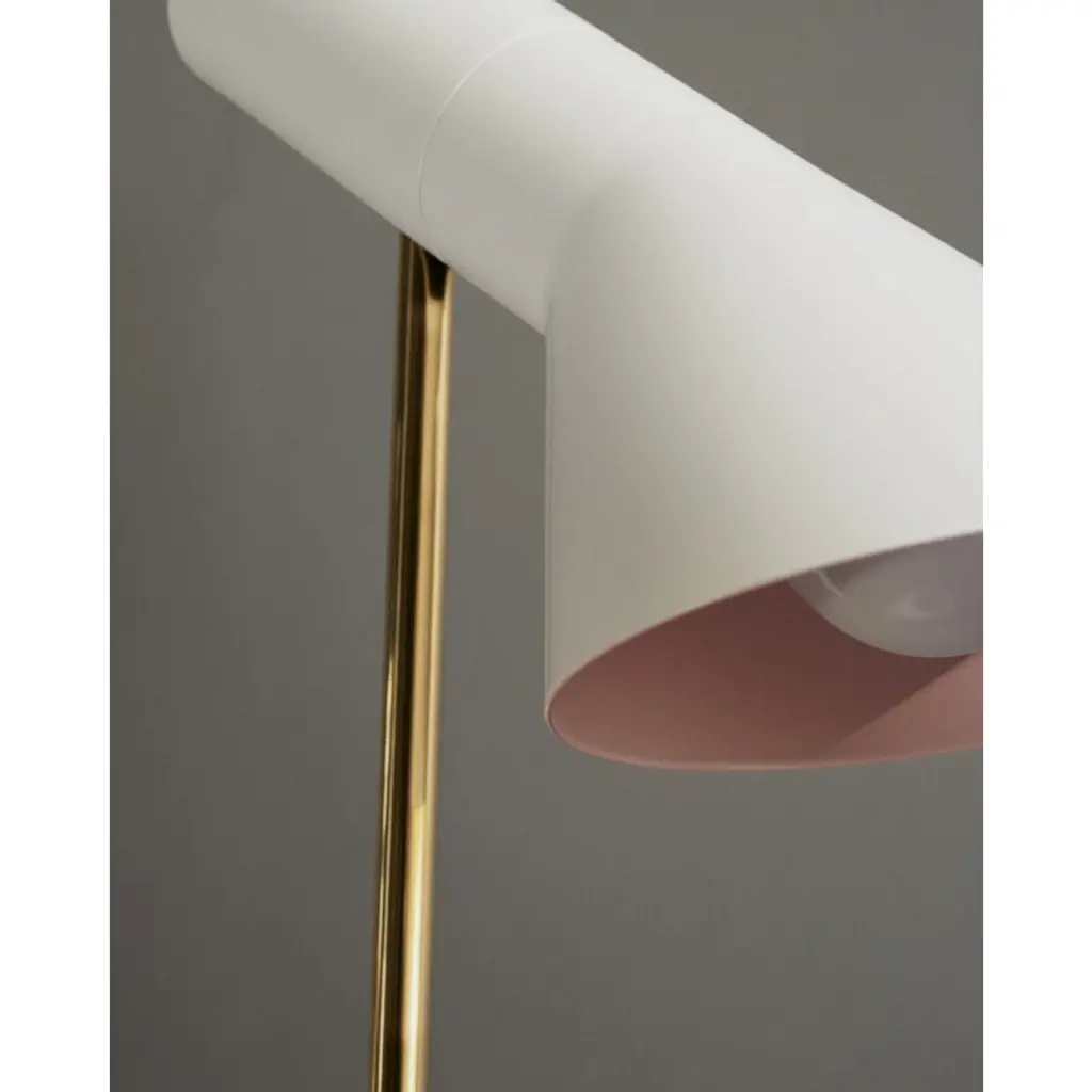 The AJ Mini Anniversary Edition, launched in honor of Louis Poulsen's 150th anniversary, is a unique collector's item. The outer surface of the anniversary model is painted matte white and the inner surface is pale pink, with the brass stem adding a touch of sophistication. What's more, the stem will develop a lovely patina over time, bringing a further layer to the luminaire's refined look. The AJ Mini table lamp by Louis Poulsen is a smaller version of Arne Jacobsen's classic design, perfect for the nightstand or windowsill. The iconic form of Louis Poulsen’s AJ range was born in 1957 when the legendary Danish architect Arne Jacobsen designed the SAS Royal Hotel in Copenhagen including its interior and furniture. The timeless lamp has a sculptural design that consists of basic, geometric forms: a cone-shaped shade with a simple cylinder socket. The adjustable shade, painted matt white inside, reflects soft and pleasant light with no glare. A slim arm and lightweight base complete the classic look of the AJ luminaire.
