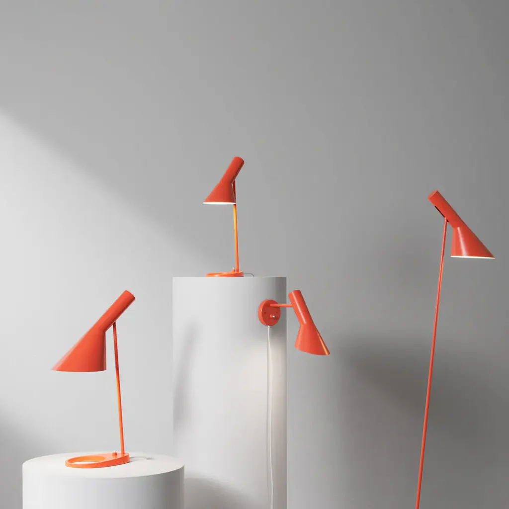 Arne Jacobsen designed the AJ Lamp for the SAS Royal Hotel in Copenhagen (Radisson Collection) in 1957. Today, the AJ family is regarded as the design that the Danish architect is best known for all over the world. At that time, the AJ family comprised a table and a floor lamp as well as a wall lamp, a small table lamp and a table lamp that was designed to attach to the table. The wall lamp could be found in beautiful rows in stainless steel in the lobby when the hotel was opened in 1960. In combination with the pendant AJ Royal, the AJ Lamp formed part of the overall design concept that Jacobsen created for the hotel. Arne Jacobsen did not just design the hotel down to the smallest detail for SAS (Scandinavian Airlines), he also designed almost all the hotel's original furniture and utility items. The profile of the AJ Lamp with its straight lines and its combination of oblique and right angles is not only seen as a formal parallel to the profile of the Series 3300 seats, but also to the geometric profiles of his buildings. The AJ Lamp was used in several parts of the hotel, in copper and stainless steel. Furthermore, it was originally available in light grey, dark brown and black like the AJ Pendant. New colors have since been introduced over the years in celebration of the series' jubilees. In 2020, the 60th anniversary of the opening of the SAS Royal Hotel will be celebrated with the reintroduction of the AJ Mini Table of which looks particularly at home on a window sill, on a bedside table or in combination with other occasional furniture. All the AJ Lamp versions will be reintroduced in the original stainless steel version, which reflects its surroundings in the spirit of Arne Jacobsen and emphasises the lamp's minimalist and distinctive shape and flawless emission of light.