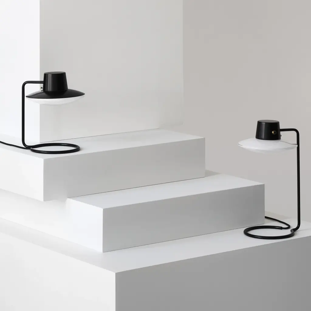 Originally designed by Arne Jacobsen in 1962 for St. Catherine’s College at Oxford, the AJ Oxford Table Lamp’s sleek, graphic design reflects the modernist architecture of the college, creating a striking contrast with the classical surroundings of the University. The lamp features a slim stem and a circular base, available in several variants, including different heights and with or without a metal top shade.