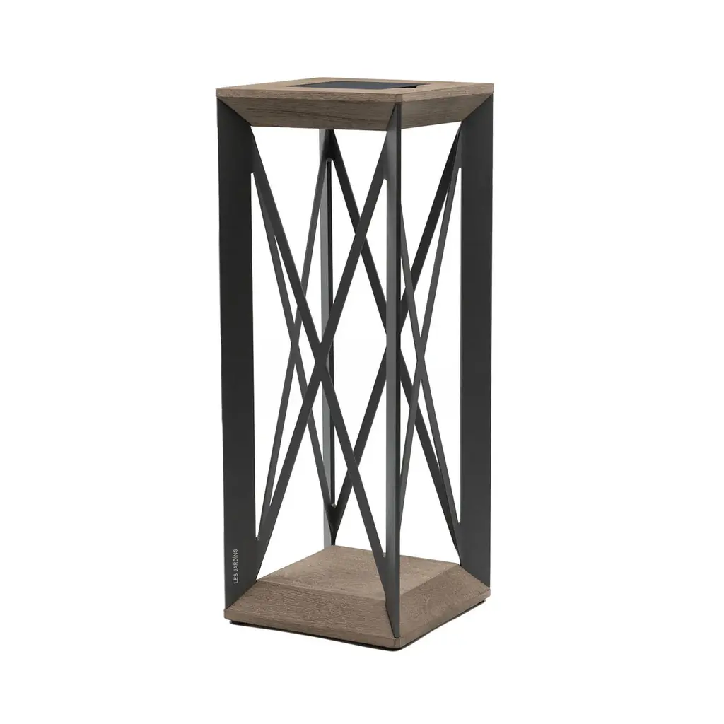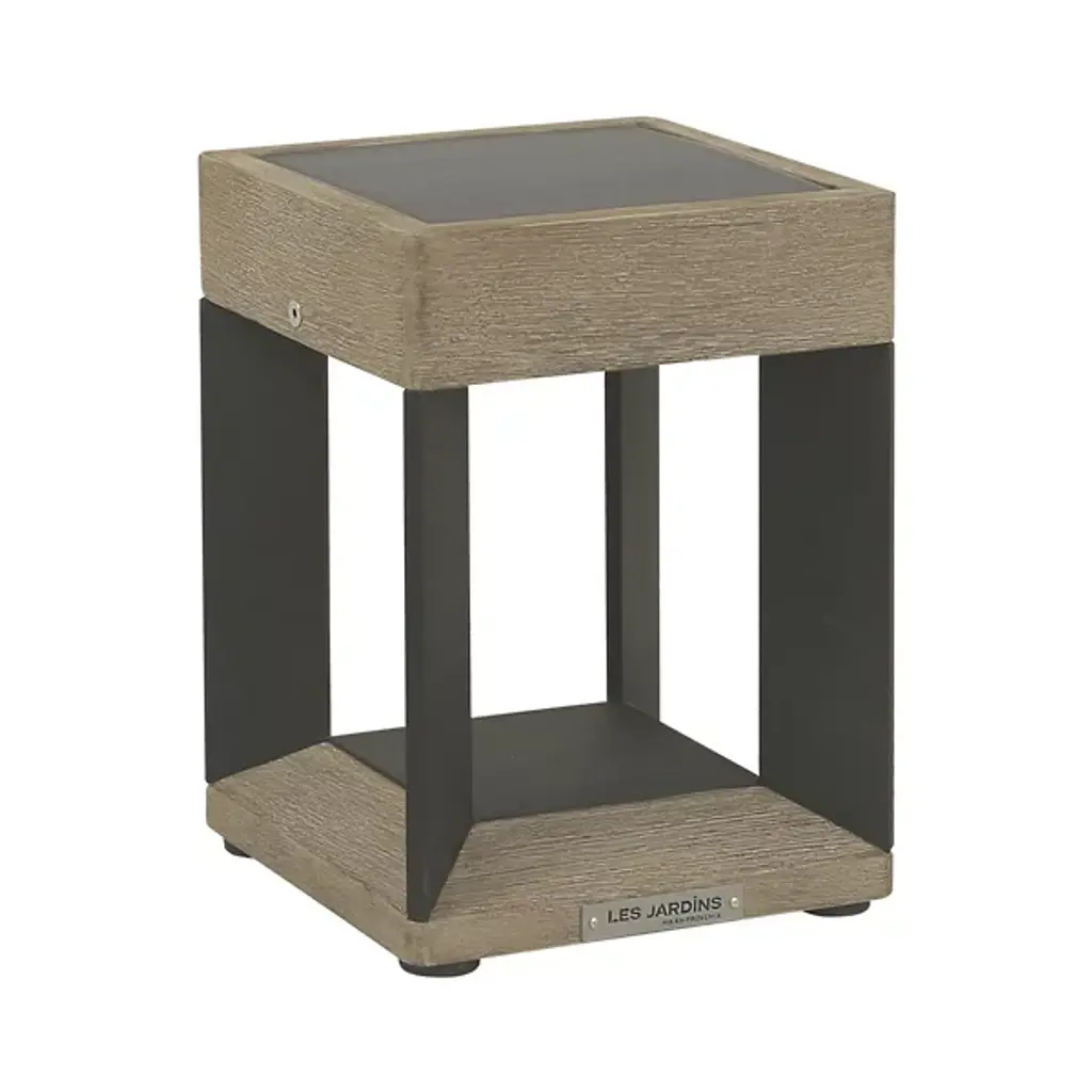 Transform your outdoor space with the Akin Outdoor Solar LED Table Lamp from Les Jardins, a perfect blend of elegance and practicality. Designed with a sleek aluminum frame and rich teak wood accents, this lamp adds a luxurious touch to any setting. It automatically lights up at dusk, creating a warm ambiance with its dimmable, round autonomous solar bulb ASB200, which emits 200 lumens of soft white light at 2500K. This table lamp combines style, durability, and eco-friendly functionality to enhance outdoor dining or relaxation.