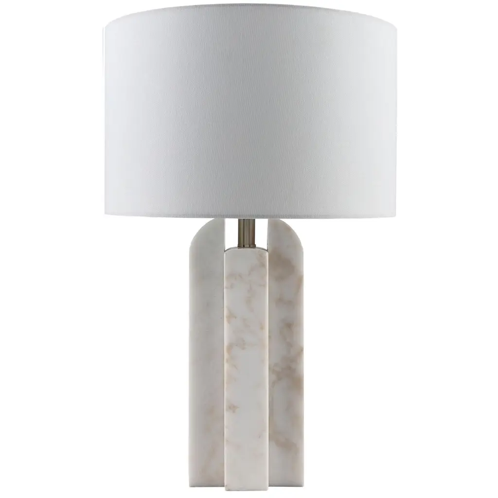36"H An alabaster table lamp in a cross configuration with a bronze-finished cap and base. Shade: 19" X 20" X 12", White, Cotton, Double Shade. 3 Way, 150 Watt Max, Type A Bulb, 9" Gold Harp