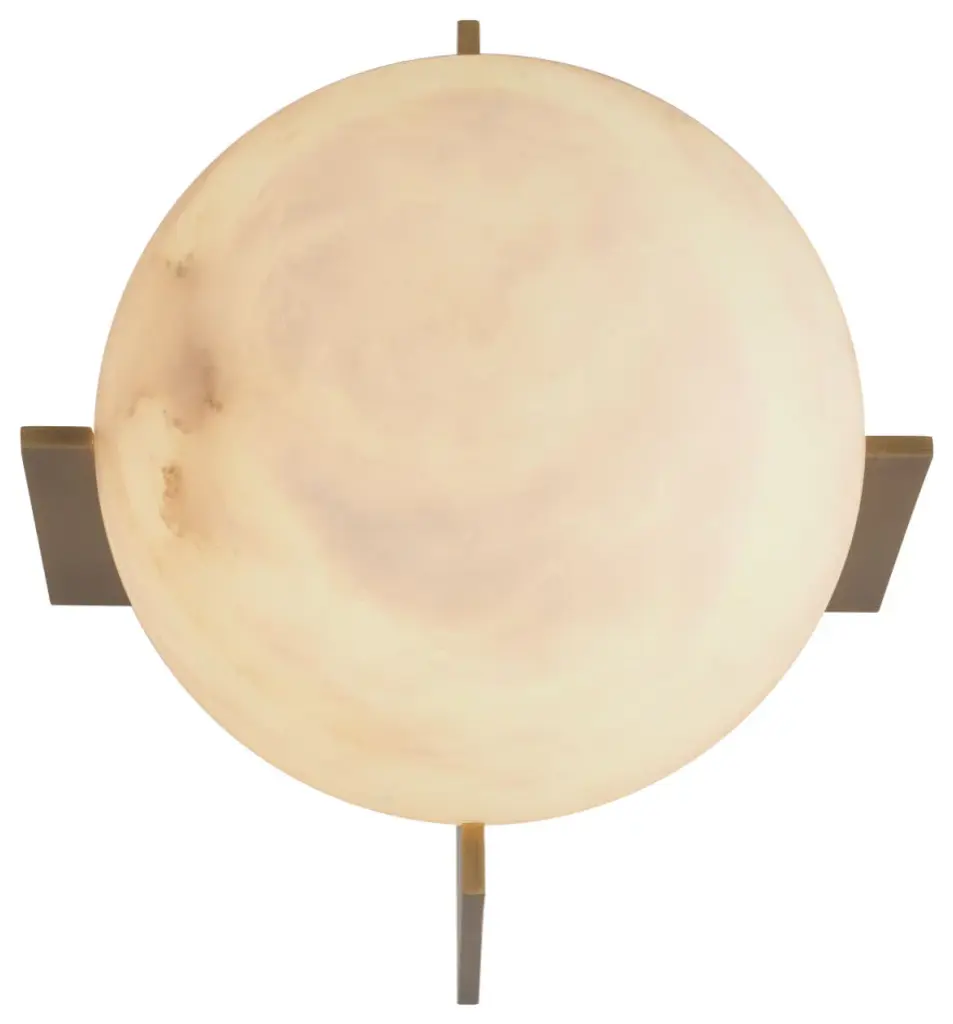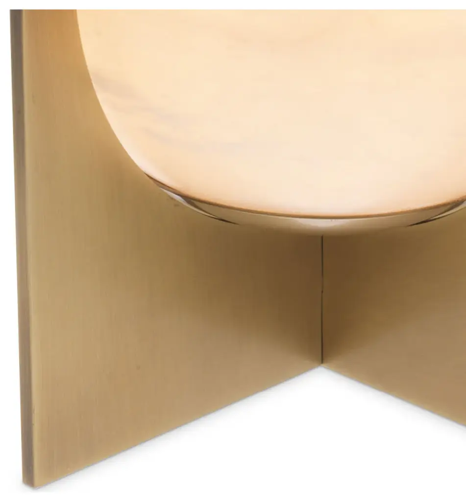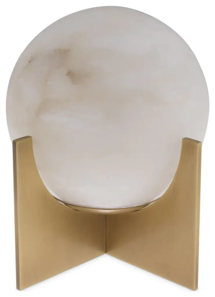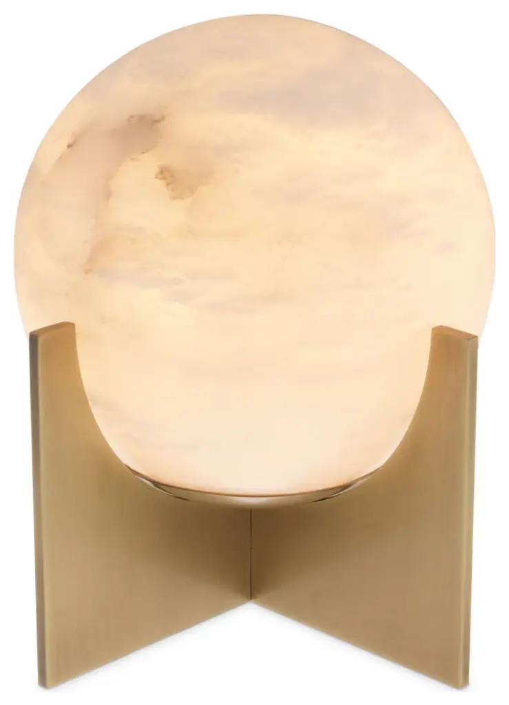 Table Lamp Scorpios S reminds one of the moons thanks to the vein pattern on its alabaster sphere. The simple base of this minimalist table lamp features an antique brass finish. You can make the light look either warm white or bright white, depending on the type of bulb you use.W9 x D10 x H9 in | Weight 11lbsMaterial | Metal1 bulb, Max 8W-E26, 110 Volt
